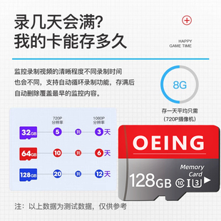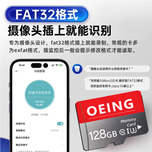 监控摄像头专用卡128G云台摄像头64g存储卡sd卡fat32TF256g专用卡