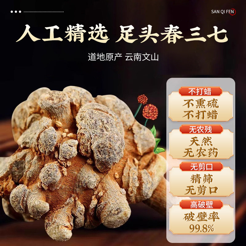 特级三七粉正宗云南文三七20头田七粉正品 官方旗舰店非野生中药材
