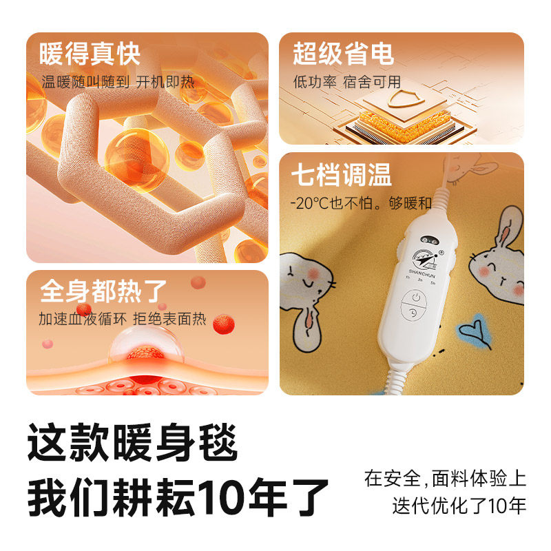 三春暖脚神器办公室加热坐垫冬天电热毯盖腿暖身毯小型护膝取暖器