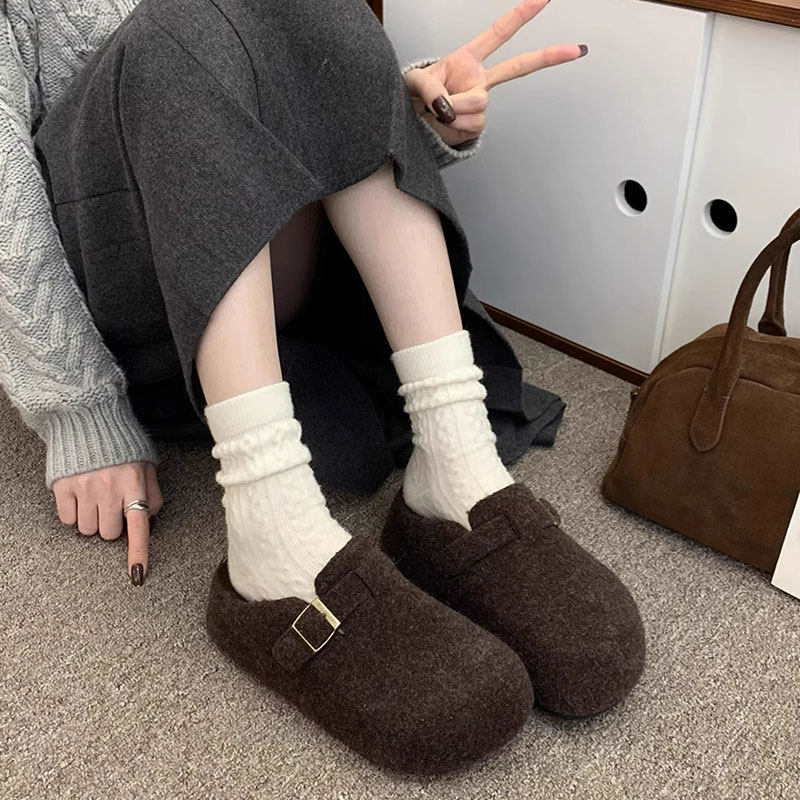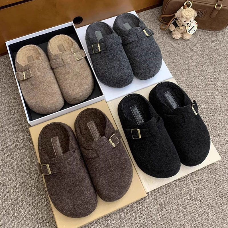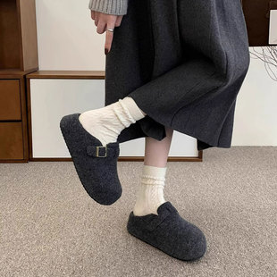 秋冬配裙子外穿加绒包头半拖 女2025新款 鲁鲁蛋 一脚蹬懒人勃肯鞋