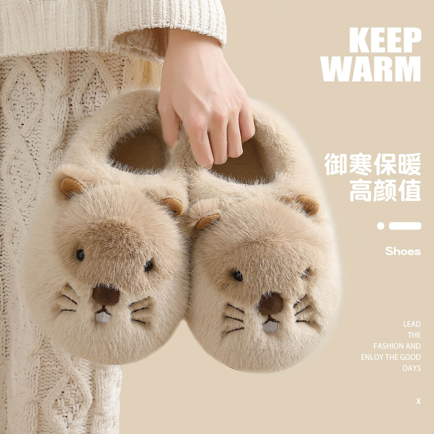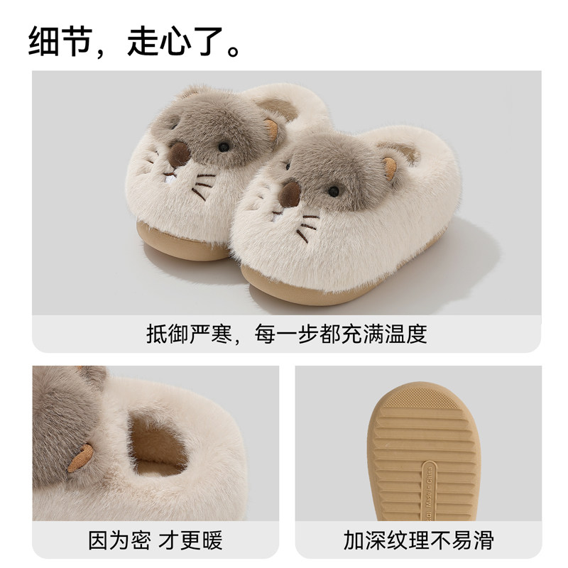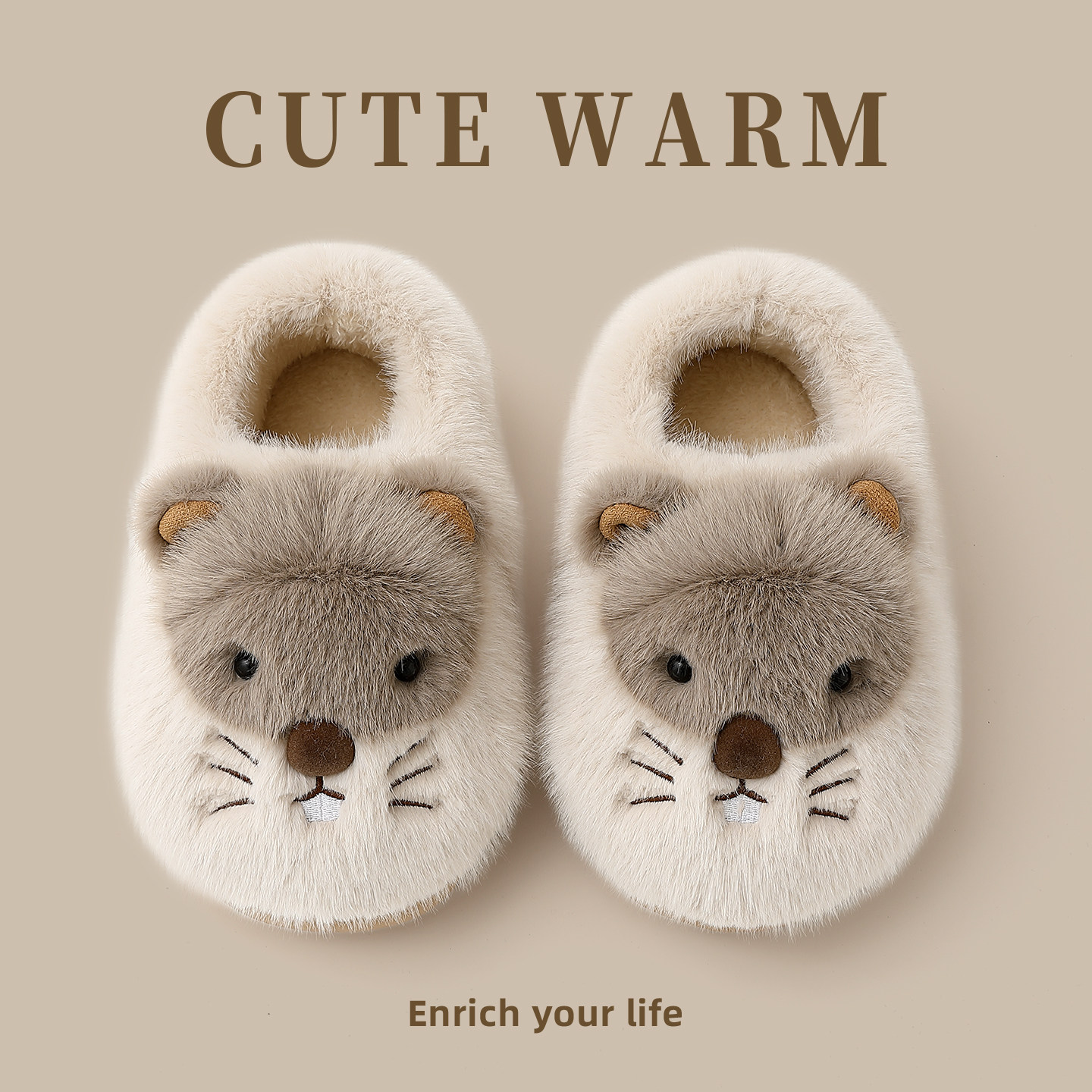 女款 可爱土拨鼠儿童棉拖鞋 室内家居保暖棉鞋 包跟2025新款 男童冬季