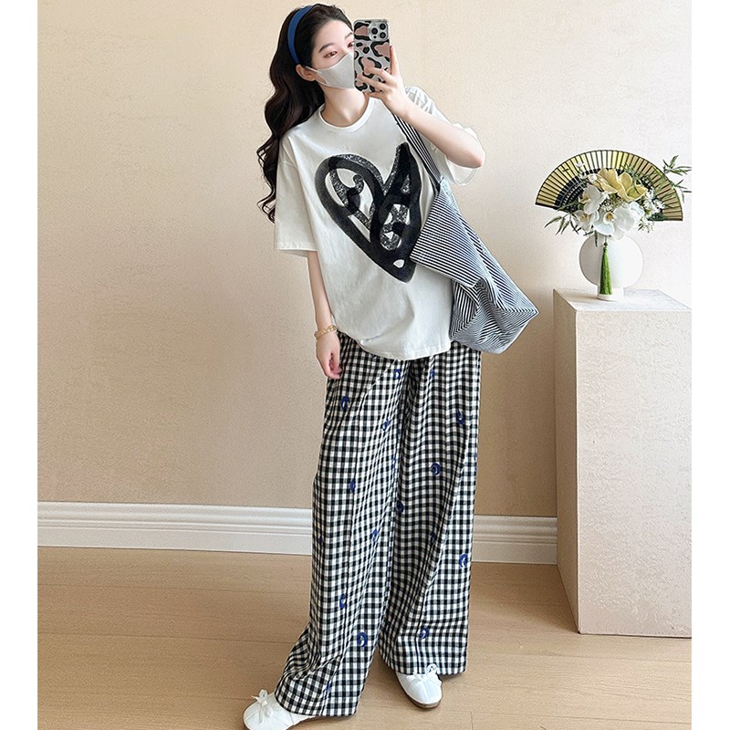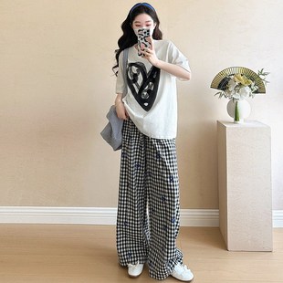 宽松休闲印花白色圆领上衣裤 孕妇套装 韩版 2025新款 子两件套女 夏季