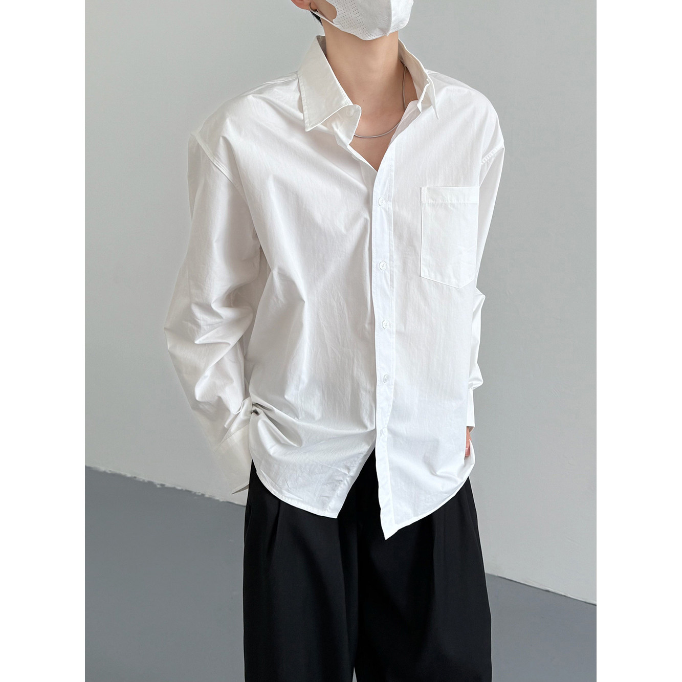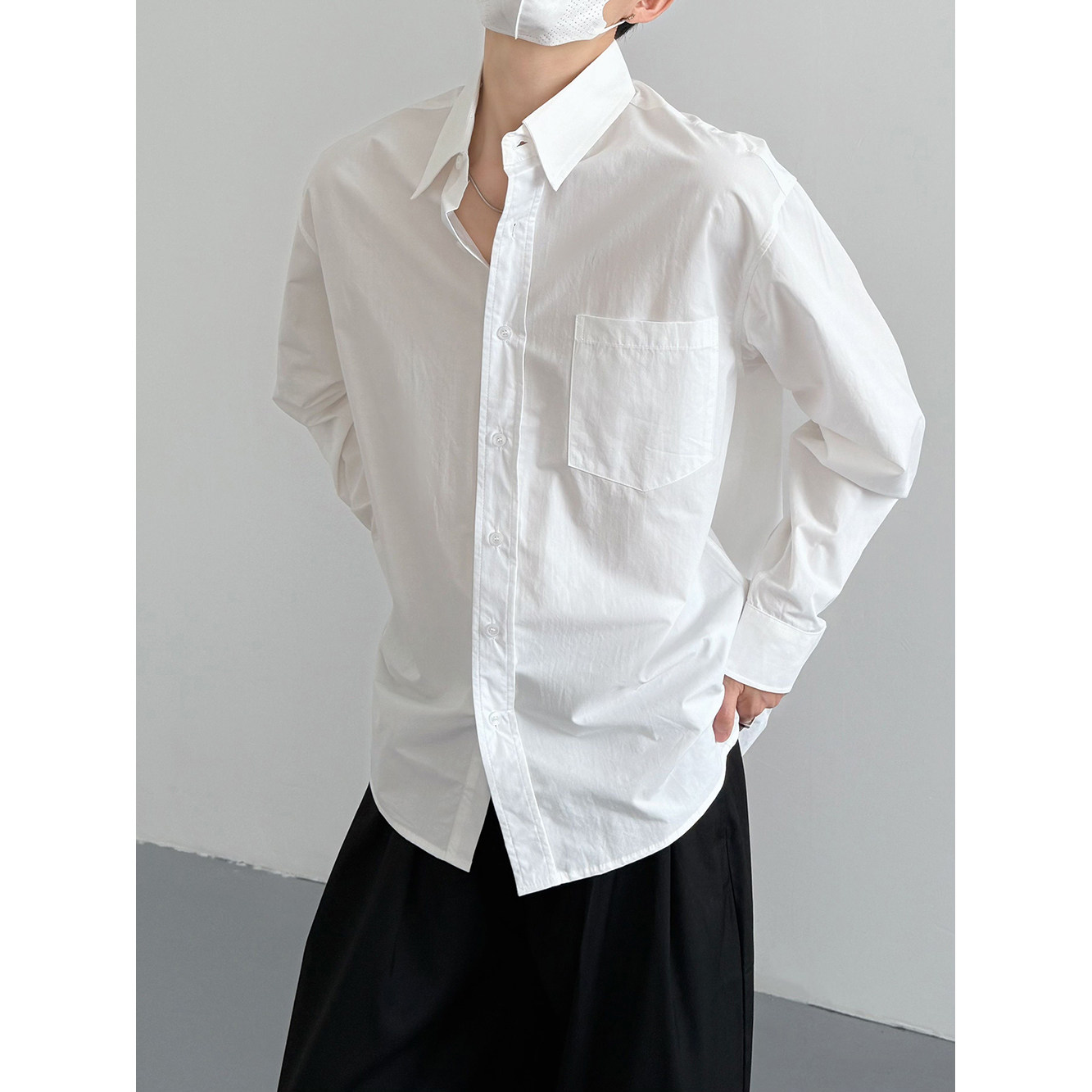 男士 衬衫 时髦简约通勤白色长袖 宽松痞帅纯棉衬衣潮 FACE春秋韩版