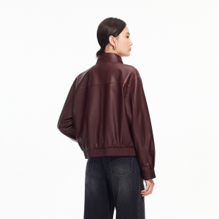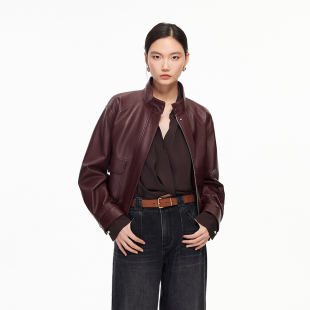 Vero 羊皮革落肩口袋拉链短外套325410003 Moda皮衣冬季