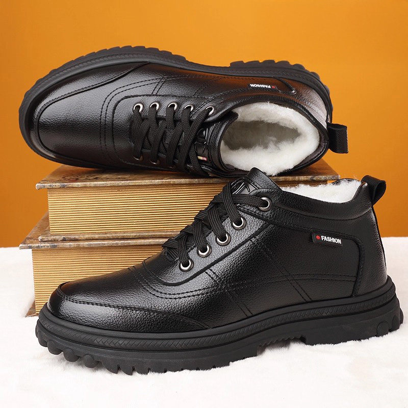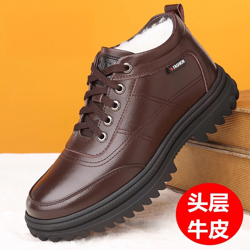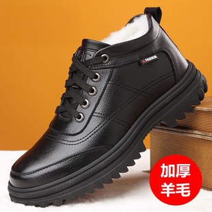 加绒保暖加厚高帮棉皮鞋 冬季 男真皮羊毛雪地靴牛皮休闲 男士 棉鞋