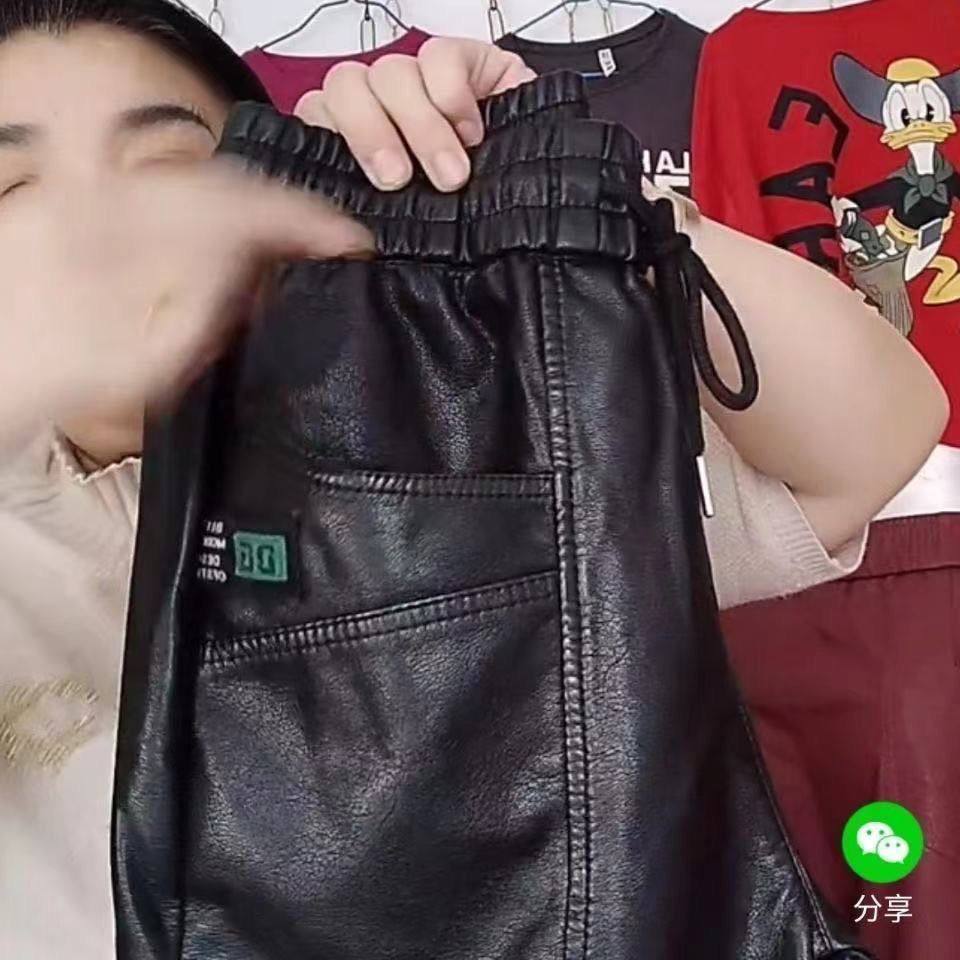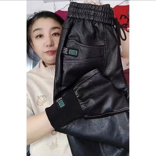 松紧腰高腰百搭收脚哈伦皮裤 200斤大码 加绒加厚2025秋冬新款 皮裤