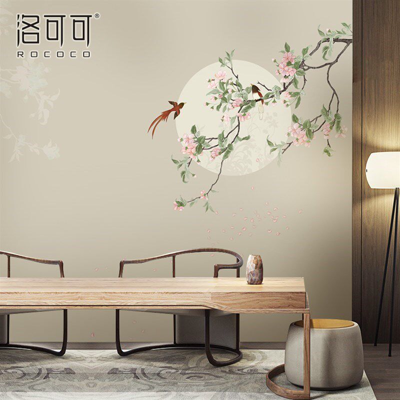 新款 壁布客厅沙发背景墙壁纸卧室床头餐厅壁画淡雅花鸟电视 新中式