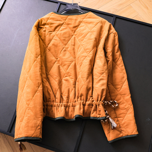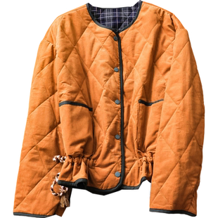 「两面穿」纯色抽褶收腰菱格绗缝圆领长袖 保暖外套女棉衣棉服M461