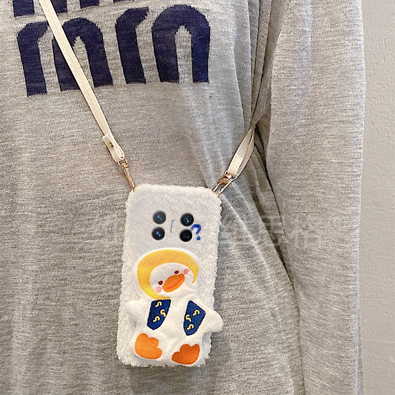 可爱歪头鸭适用华为magicv3手机壳magicvs2斜挎p50可背带pockets秋冬季 matexs2毛绒x5折叠屏x3挂绳ocket2硬壳