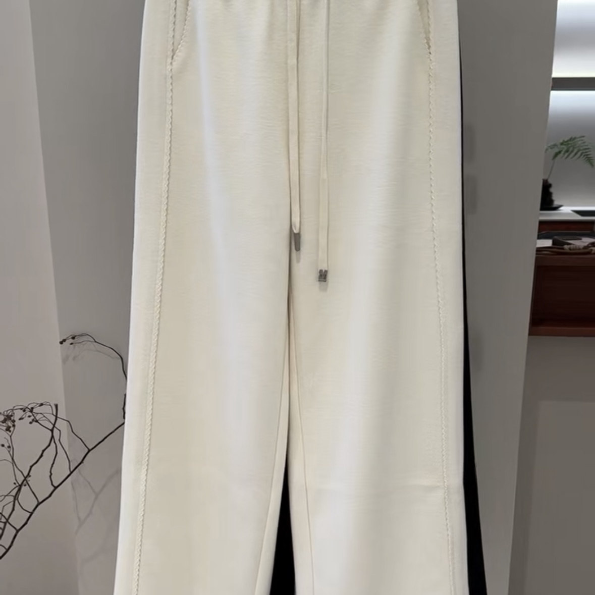 纯色百搭醋酸羊毛直筒休闲长裤 欧洲站2025秋冬新品 抽绳侧走线时尚