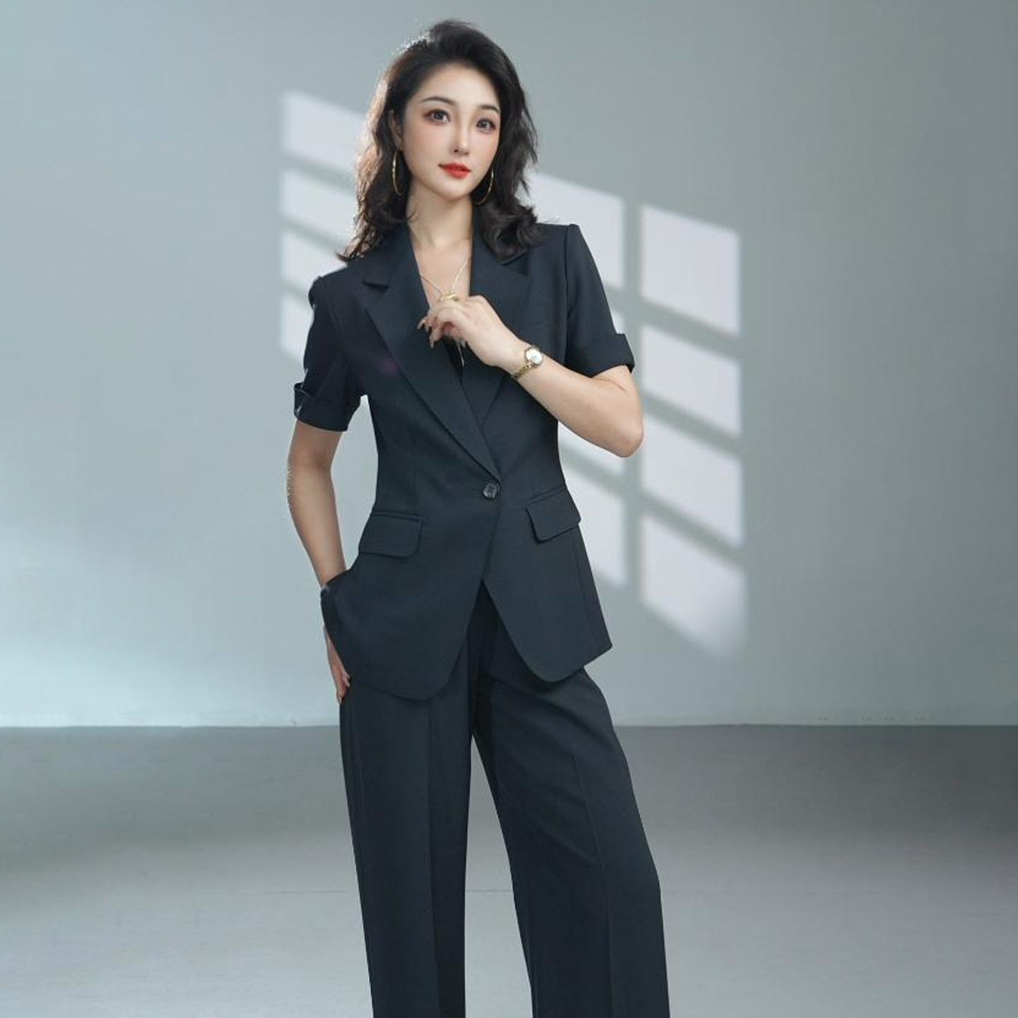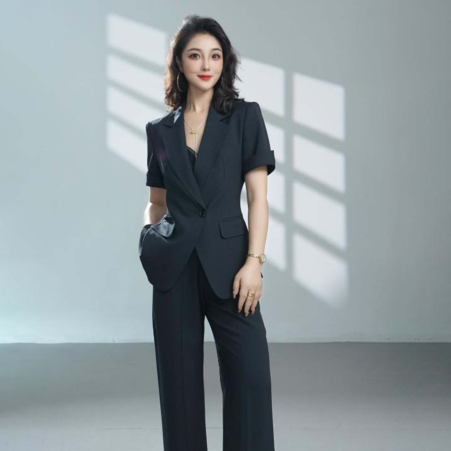 新款 夏季 薄款 一扣小西服修身 336 气质通勤职业女裤 微锥九分裤 套装