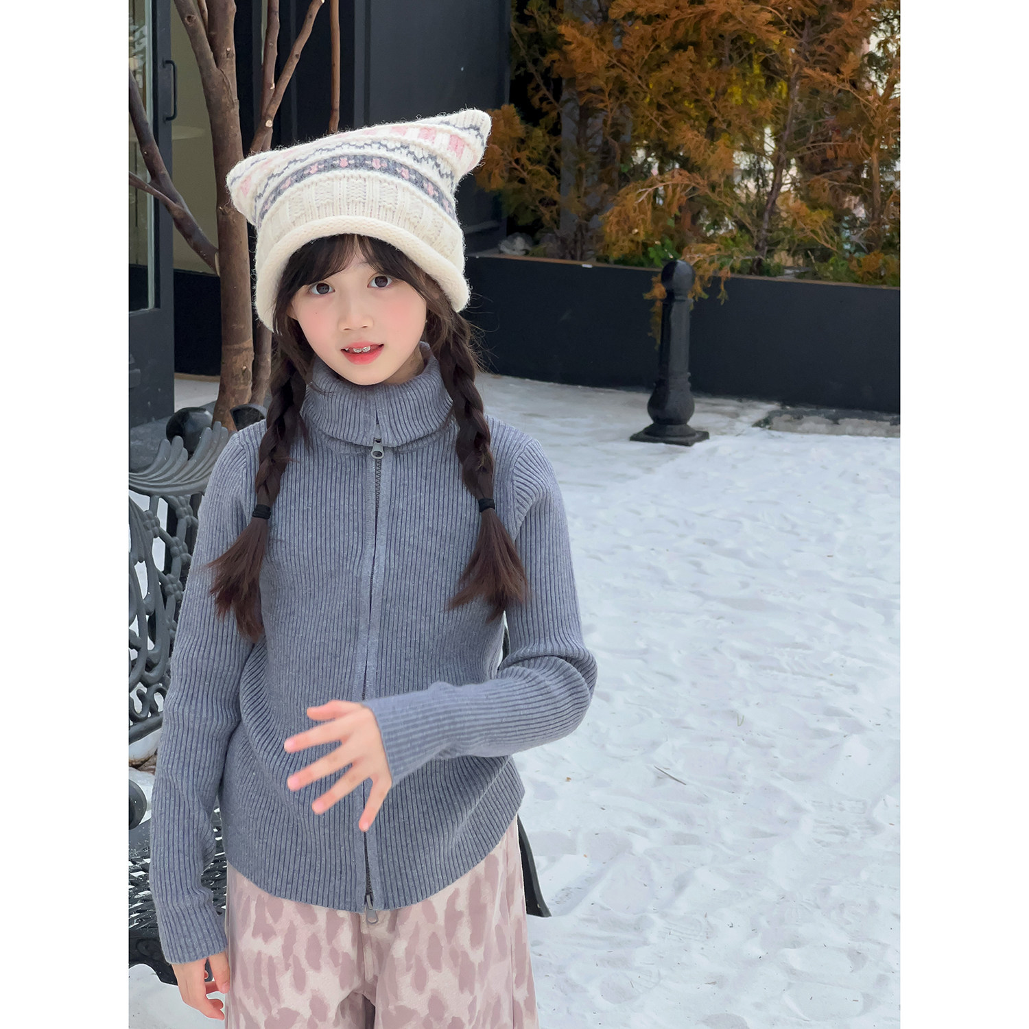 百搭纯色洋气毛衣外套 秋冬女童软糯高领针织开衫 NONO CHILD