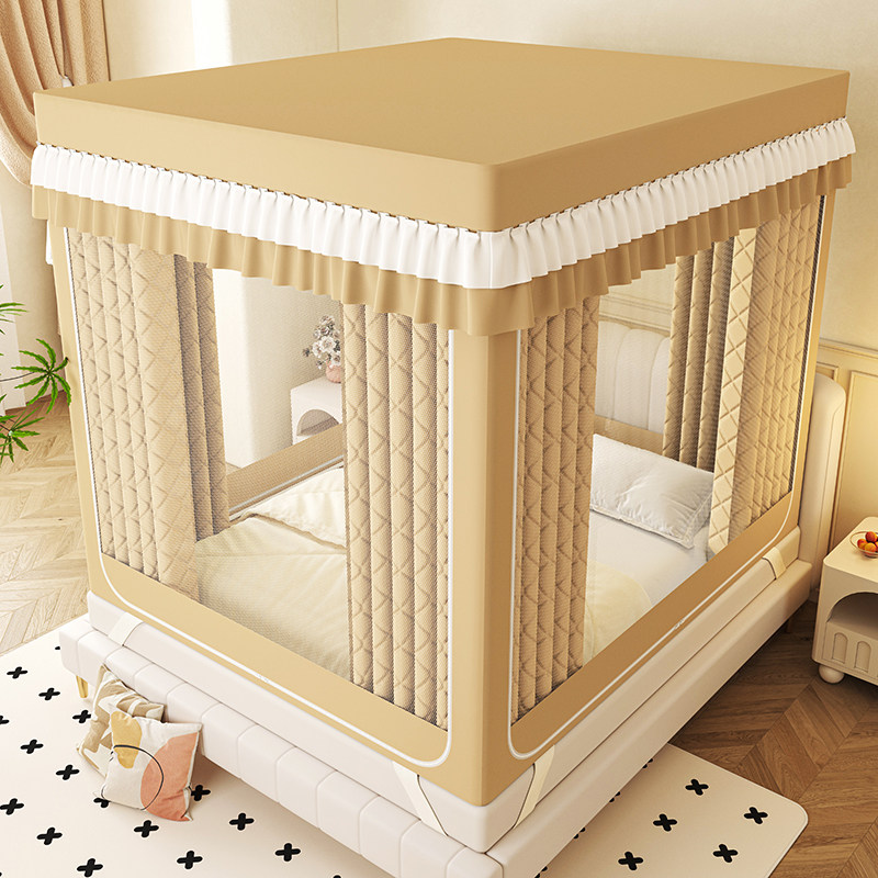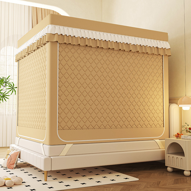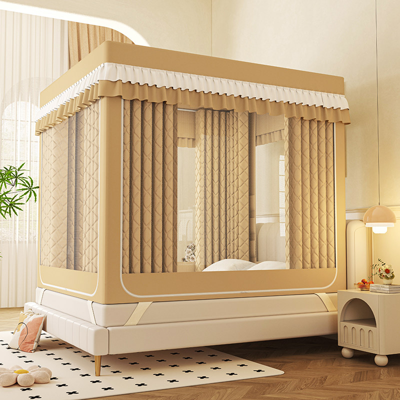 A类夹棉加厚全底防摔蚊帐冬季 防风保暖帐篷家用遮光床帘回底拉链1