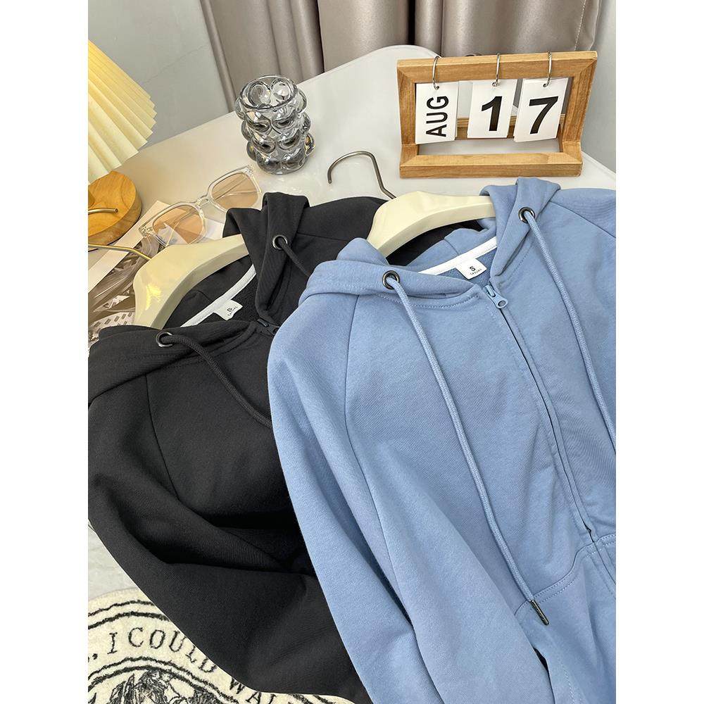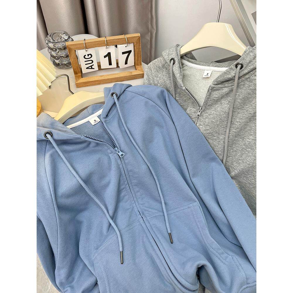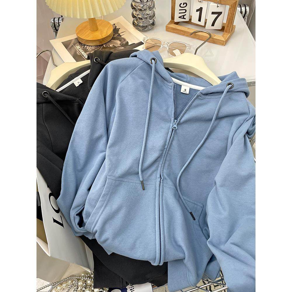 新韩式 2025春秋季 宽松慵懒风格 薄开衫 纯色连帽女式 拉炼长袖 运动衫