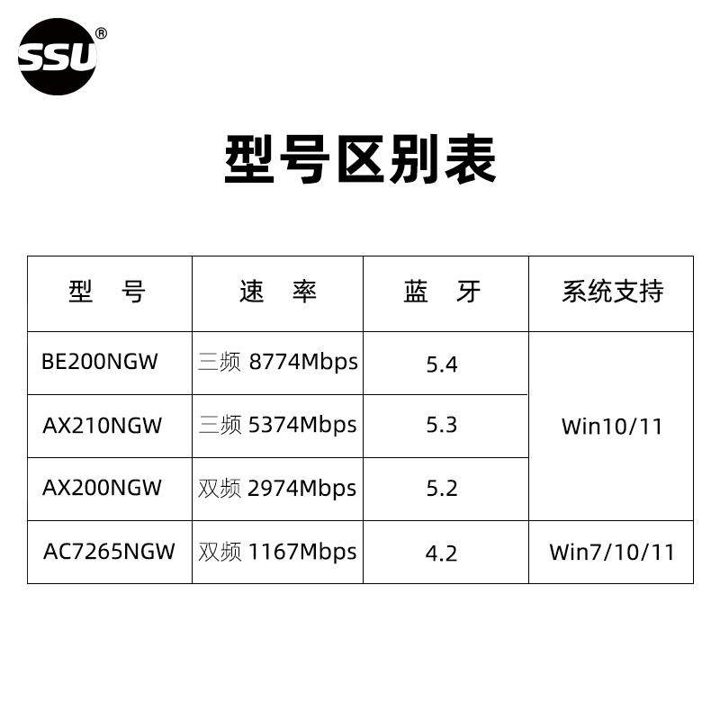 SSU NGFF接口笔记本电脑BE200WiFi7内置无线网卡8774M蓝牙5.4 笔记本WIFI6代AX210千兆双频5G无线网卡M2