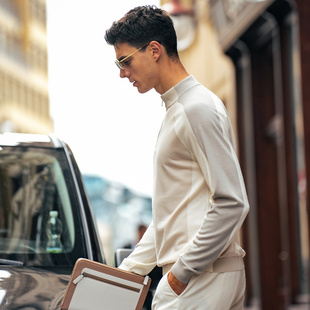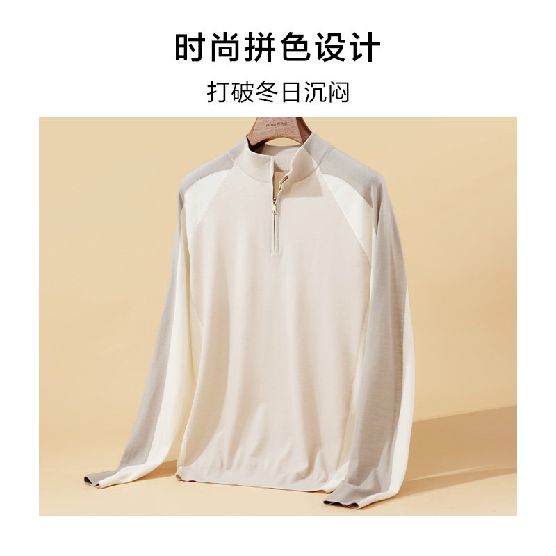MrBu布先生半拉链立领拼色长袖 可机洗毛衣BT16902 毛t男2025秋冬款