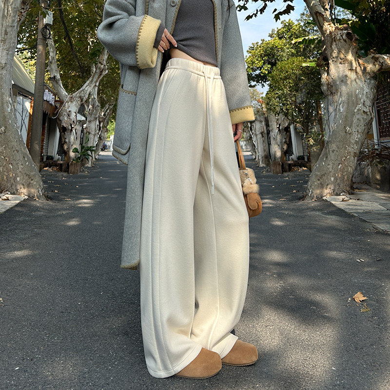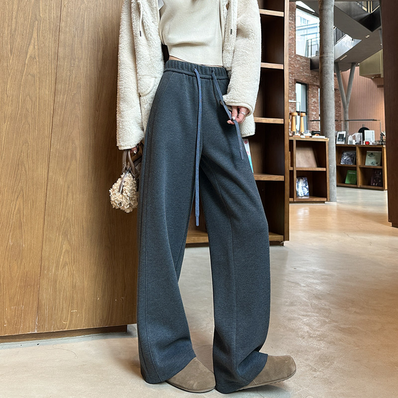 子 长裤 灰色羊毛呢阔腿裤 女秋冬加绒加厚高腰垂感醋酸糯米直筒西装