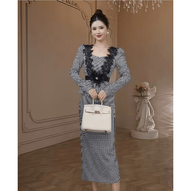 垂感长裙修身 连衣裙女春秋季 卡戴珊裙子 stevens黑色长袖 alex