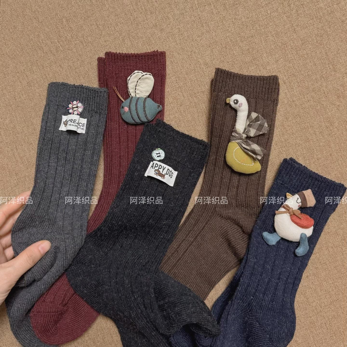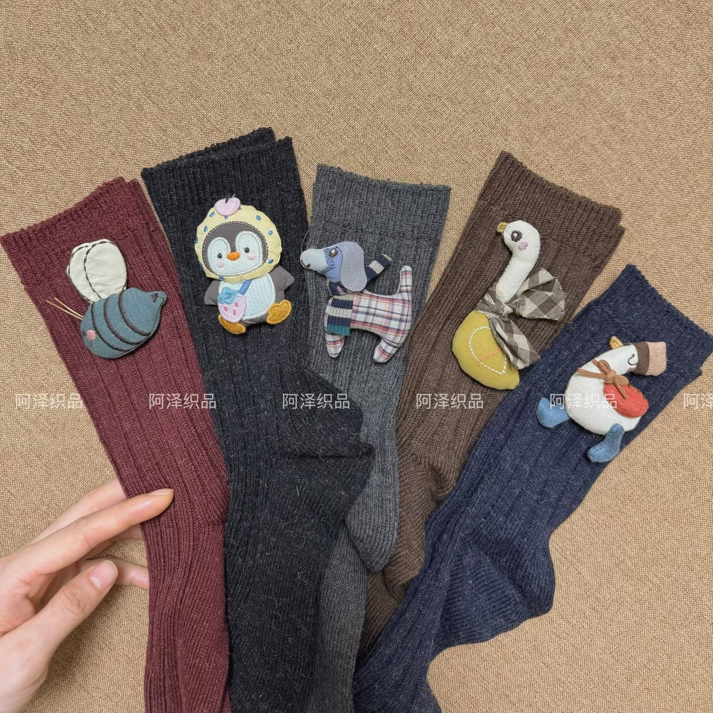 粗线减龄秋冬 立体玩偶公仔中筒袜子女ins潮AB版 充满可爱童趣 个性