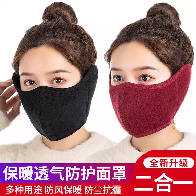保暖耳罩口罩女冬季 2024纯棉防风防寒加绒护耳二合一面罩面纱耳套
