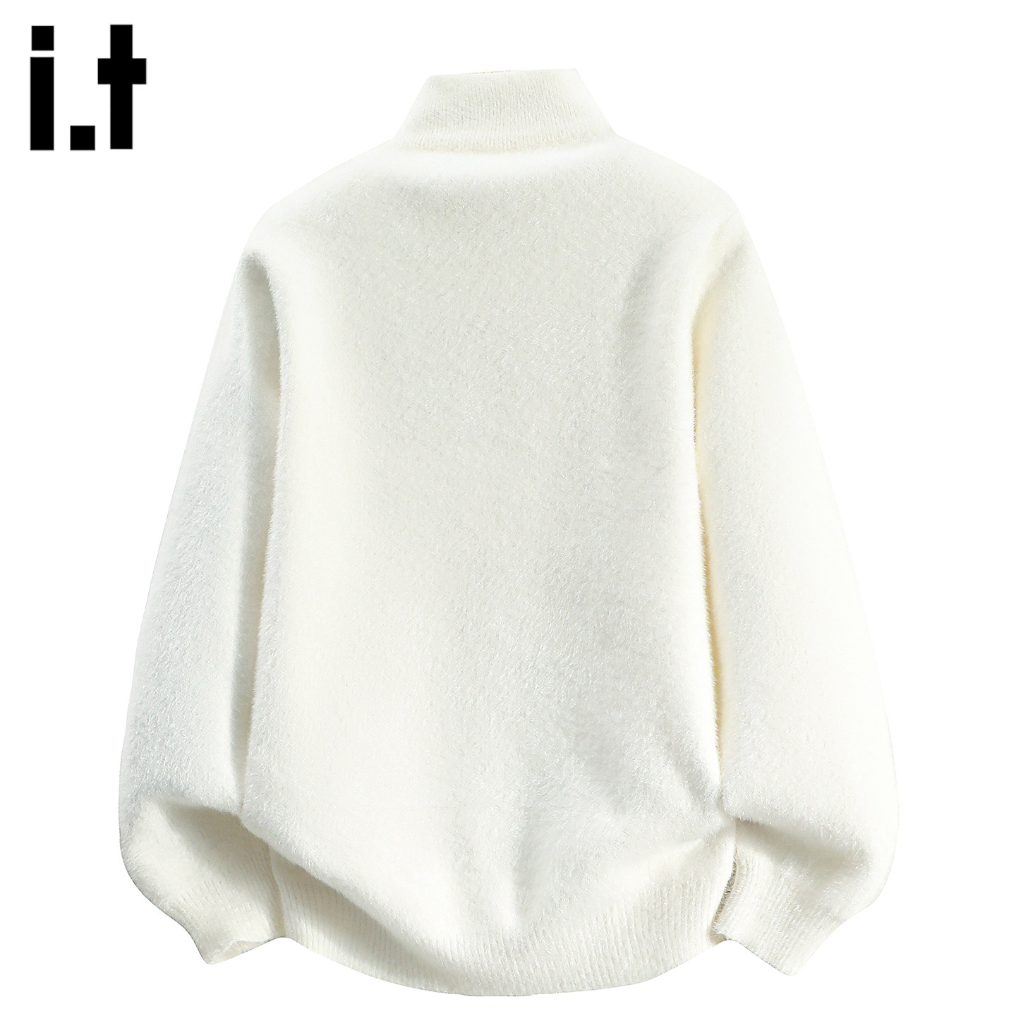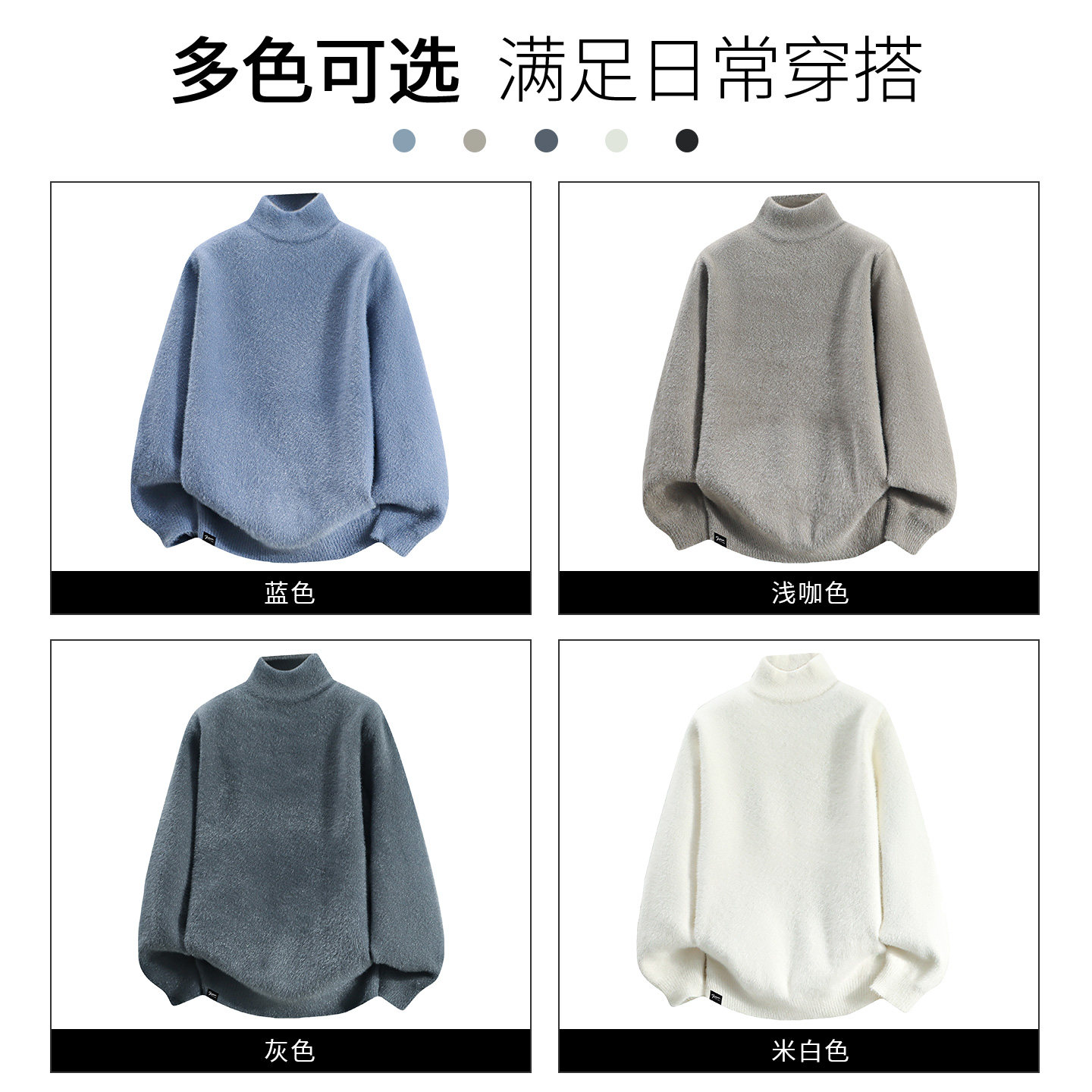 半高领内搭打底上衣针织衫 冬季 FIVECM白色水绒貂毛衣男士 5cm