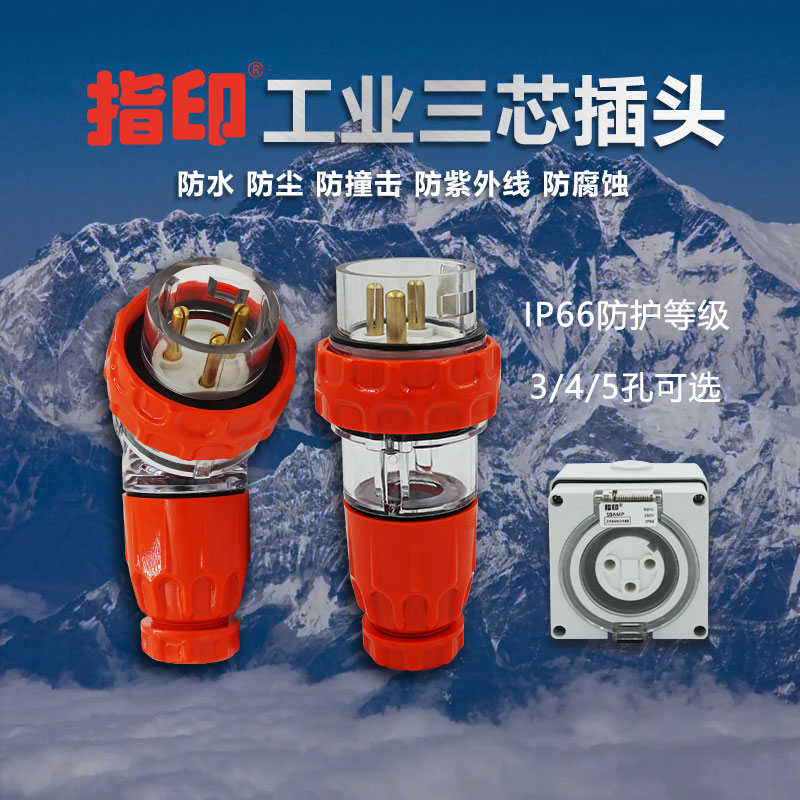 指印户外a三芯防水工业插头10A 63A大功率380V工业公插头 32A