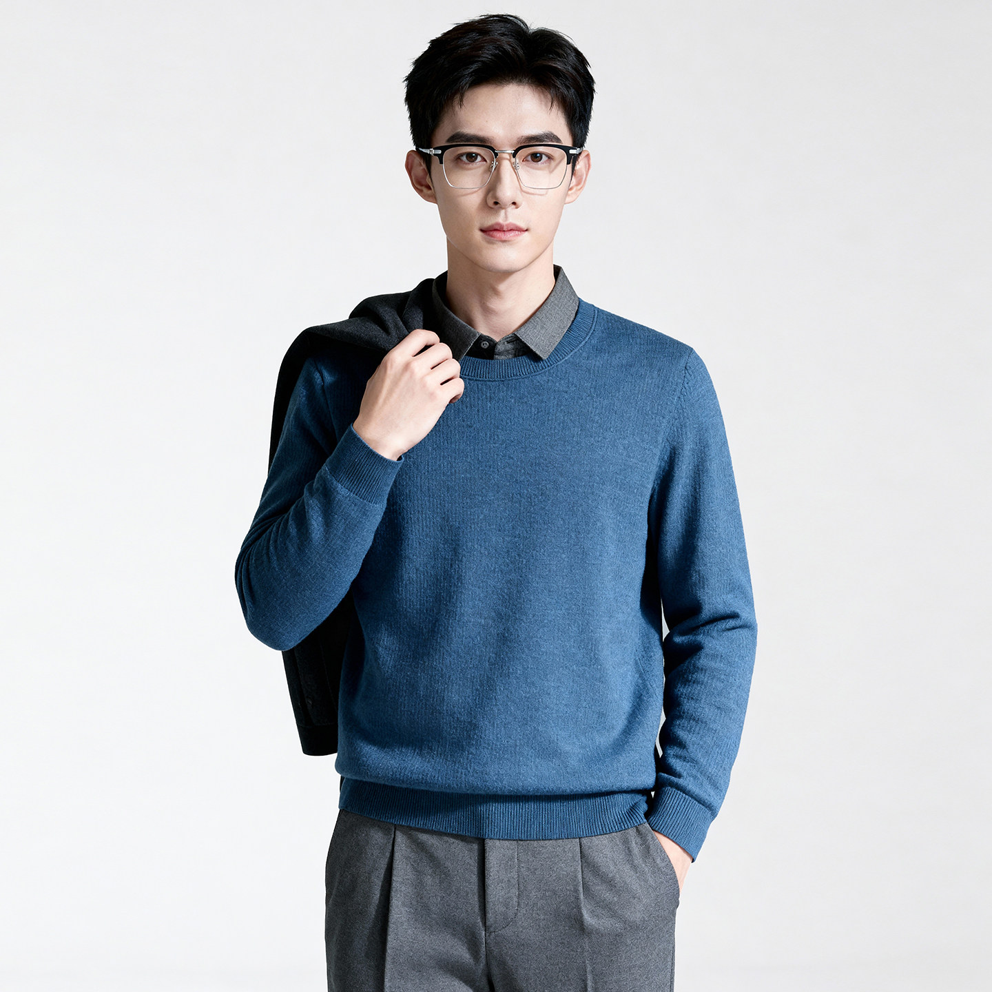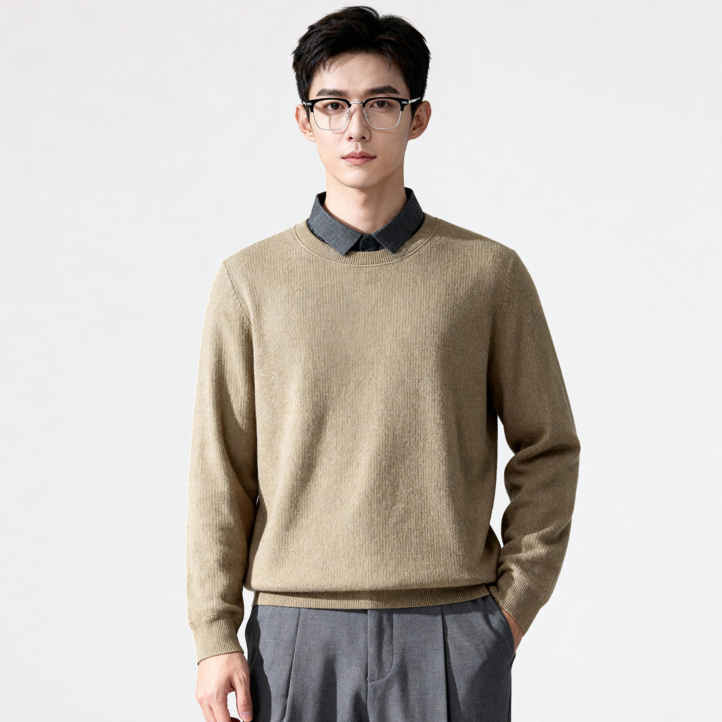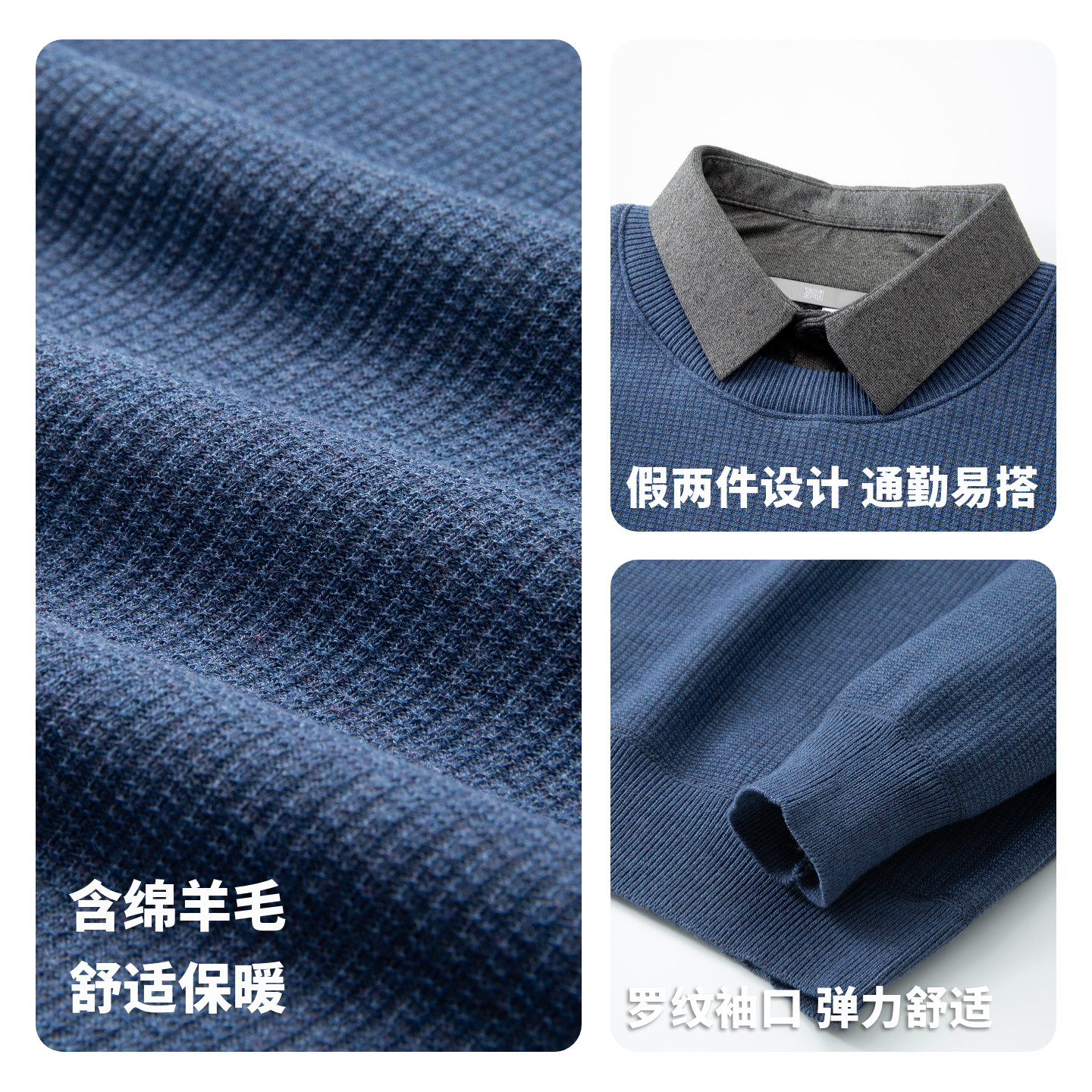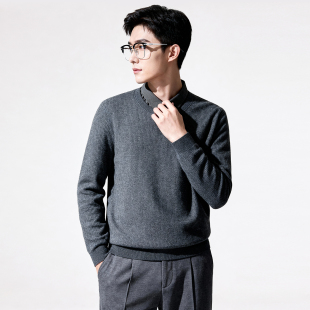 含绵羊毛 领厚毛衫 圣得西2025秋冬季 百搭假两件针织衬衫 男 新款