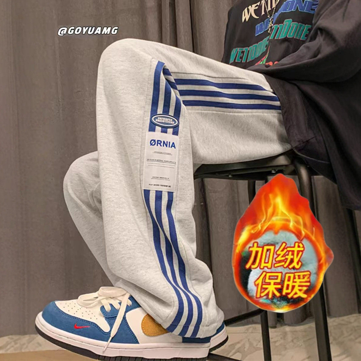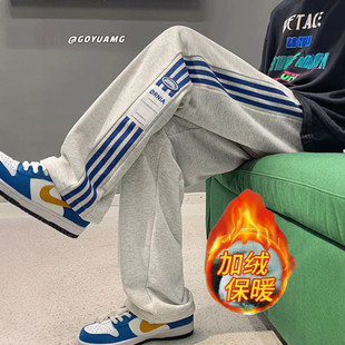 子男士 青少年宽松直筒休闲加绒长裤 秋冬2025新款 运动卫裤 美式 裤