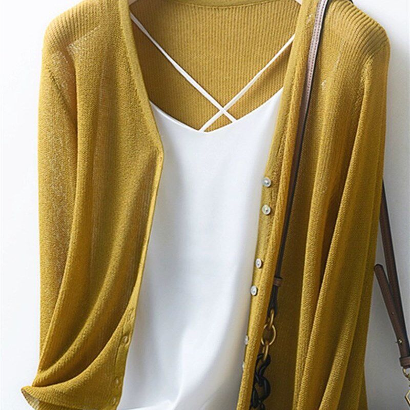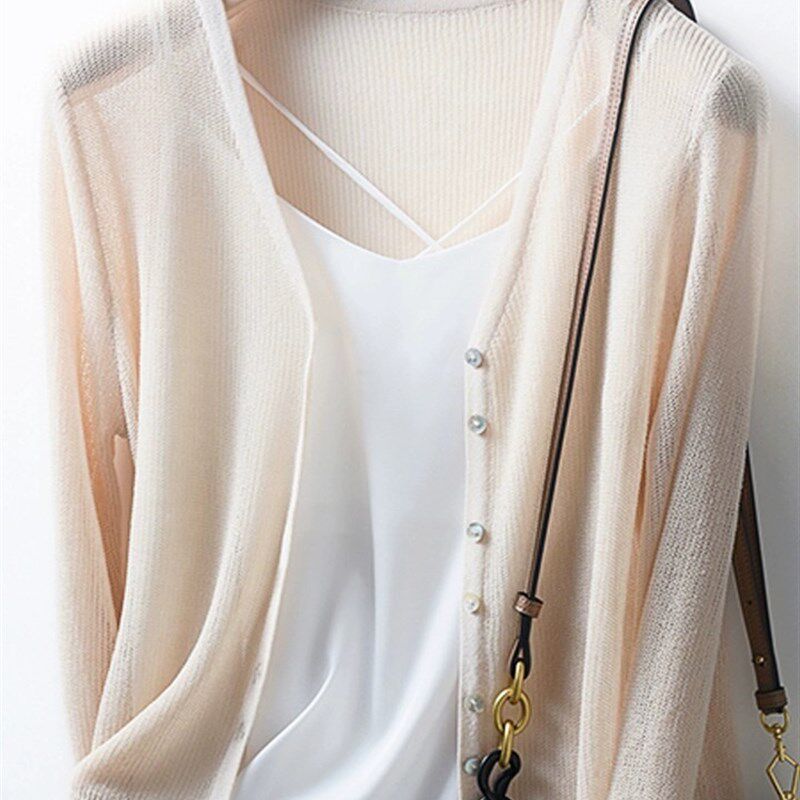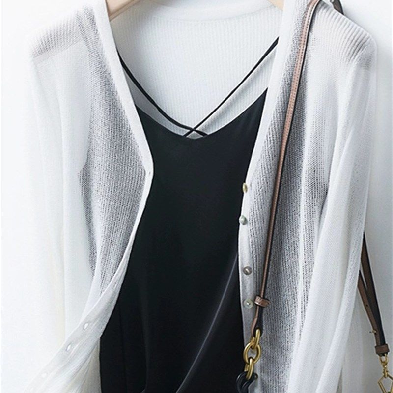 两用披肩空I调衫 女夏季 百搭通勤空气针织外 薄款 真丝亚麻防晒开衫