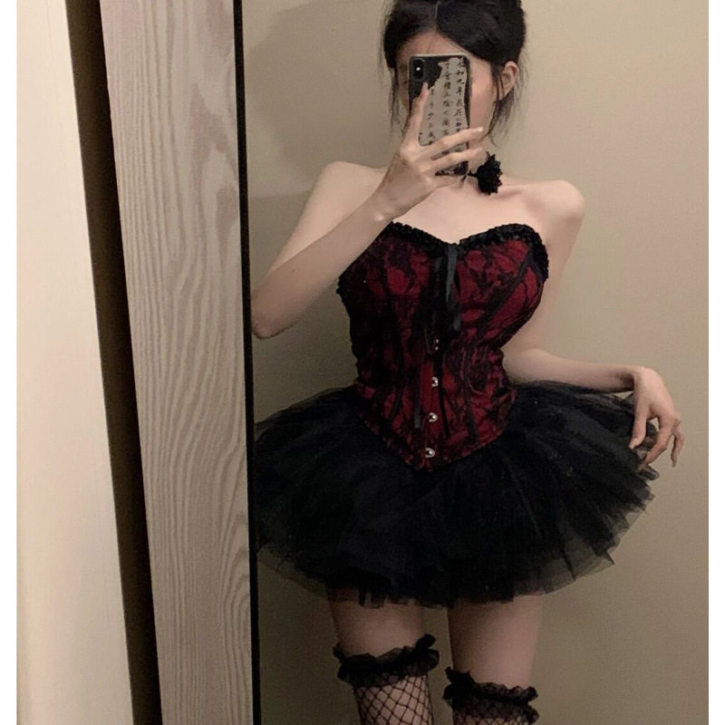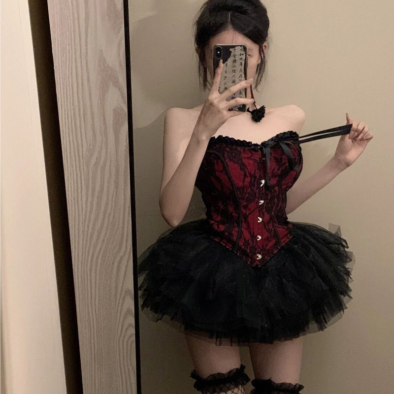 圣诞节 cos抹胸上衣显瘦蓬蓬裙短裙穿搭衣服女 性感辣妹万圣节服装