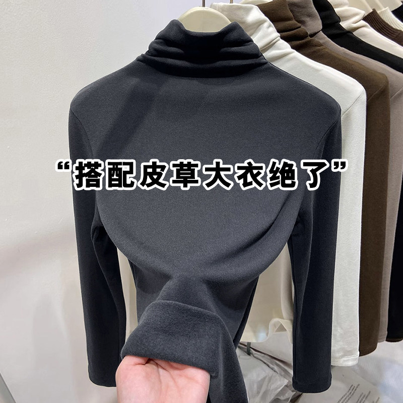 磨毛保暖黑色上衣 洋气堆堆领长袖 莫代尔高领打底衫 女内搭秋冬新款