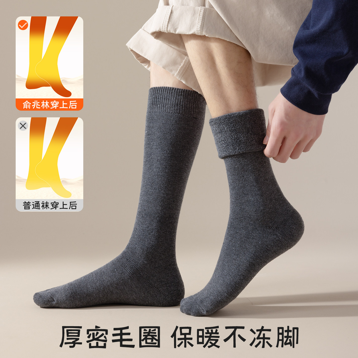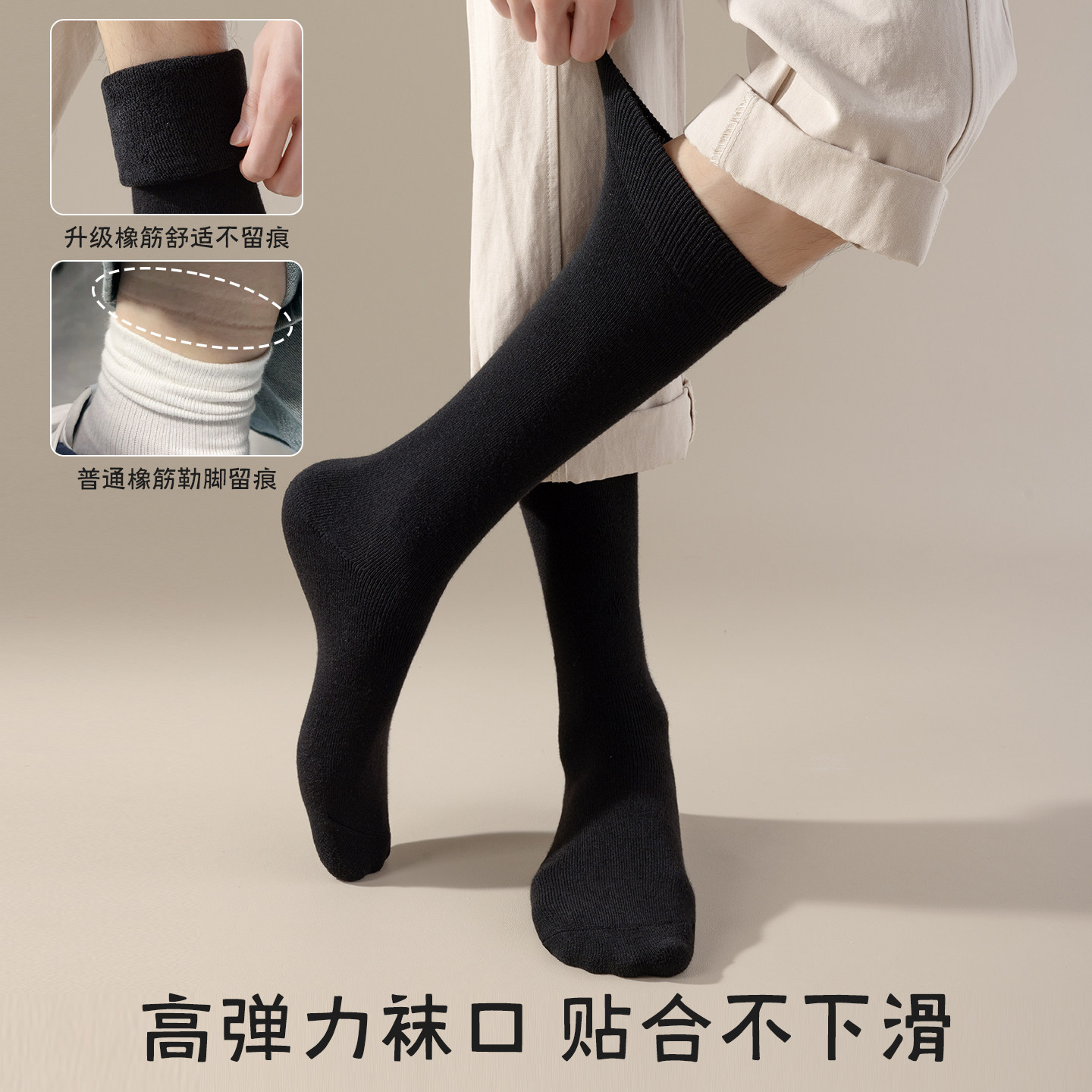 中筒袜吸汗防臭男袜黑色长袜厚全棉长筒袜 男士 袜子男款 纯棉秋冬季
