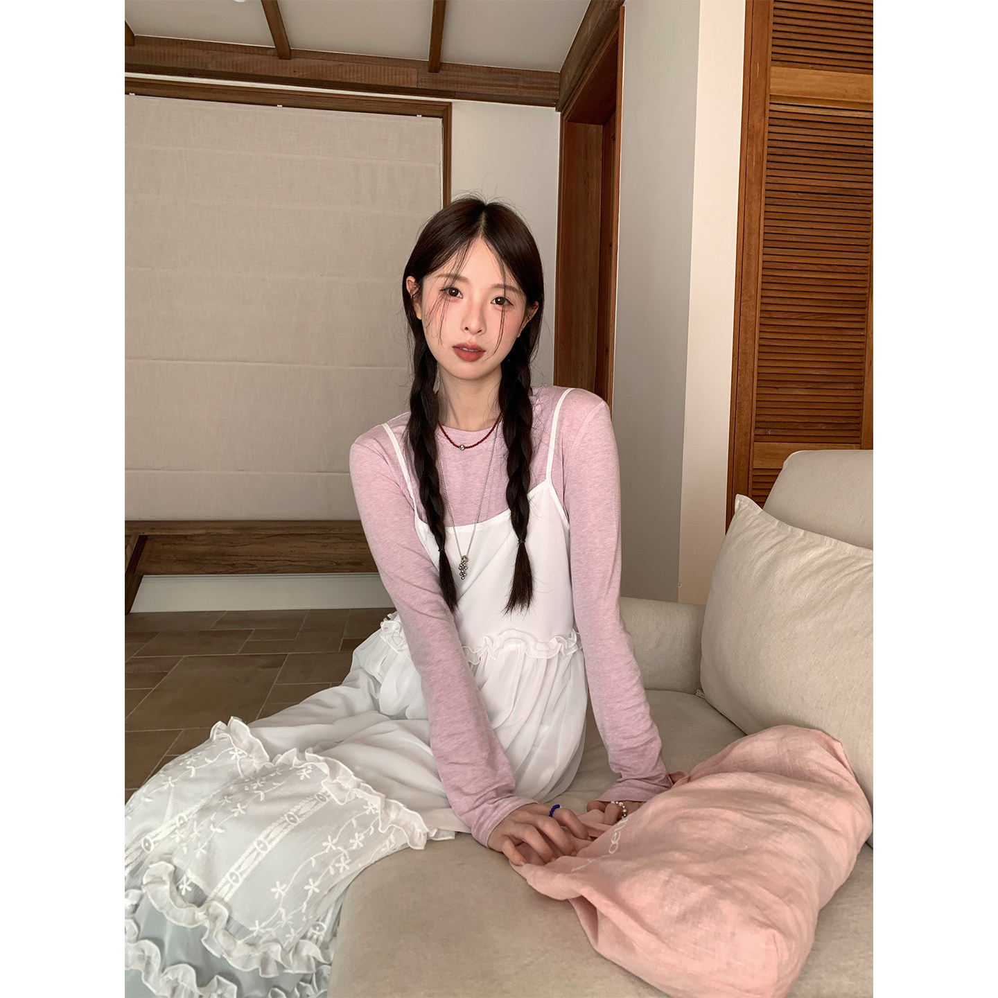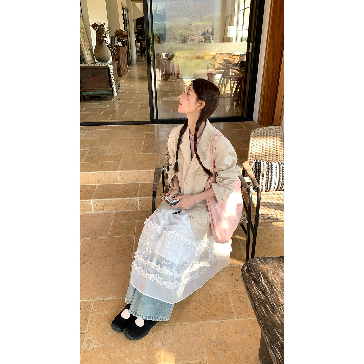 CCKOK春夏新品 韩女系通勤穿搭出街白色雪纺拼接钩花吊带蛋糕裙女