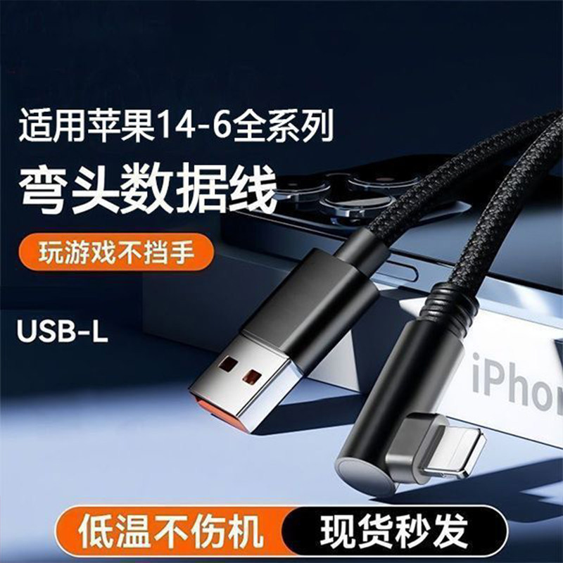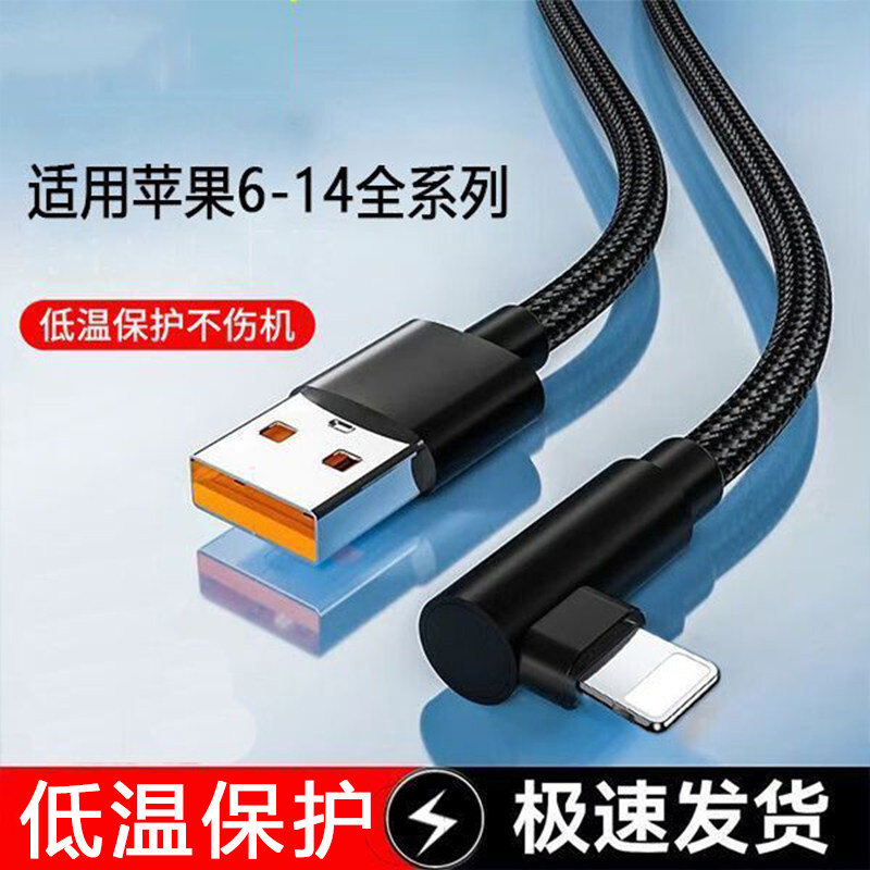 齐冰苹果弯头数据线适用iPhone11充电线快充12闪充苹果14游戏弯头手机快速X耐用plus快充不弹窗充电加长延长