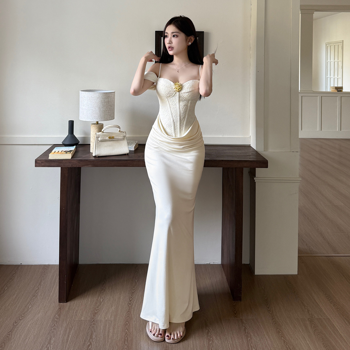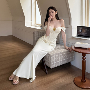instunning高级感一字肩抹胸连衣裙女修身 显瘦长裙气质收腰礼服裙