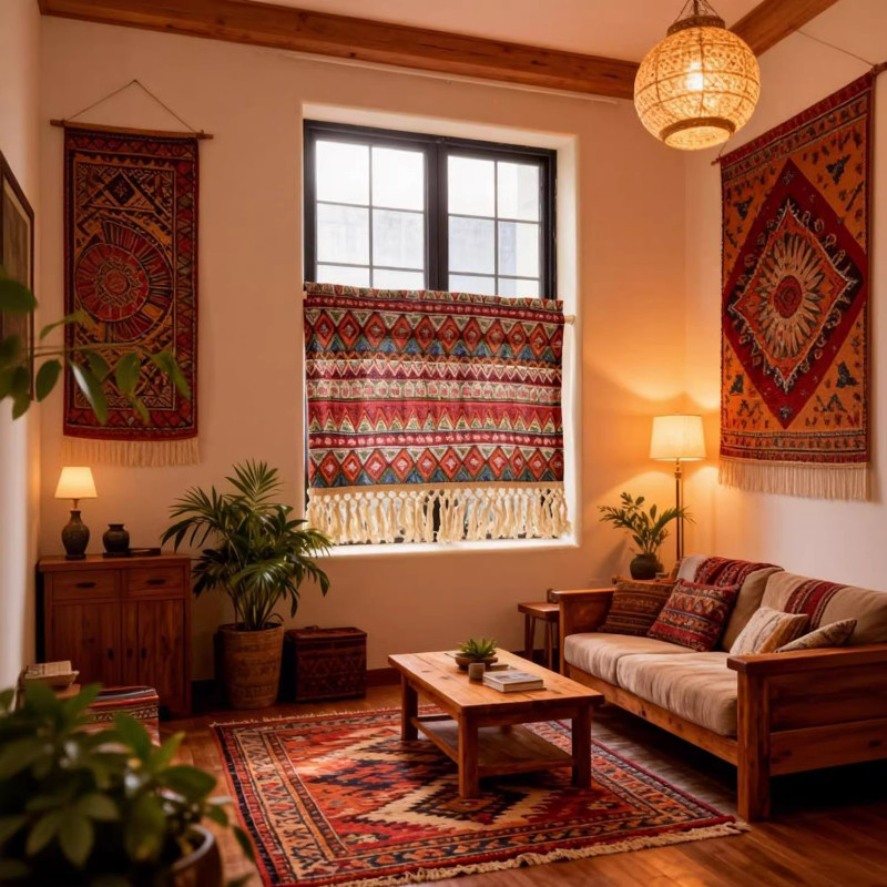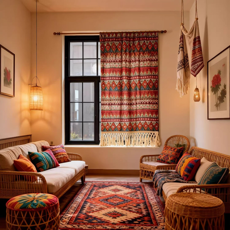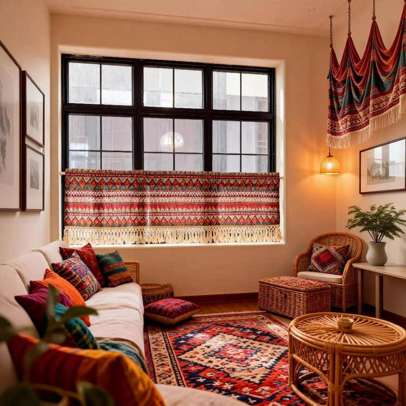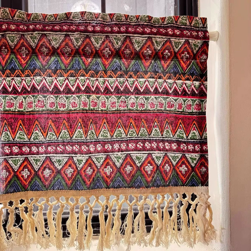 南疆 民族长流苏风复古棉麻窗帘半帘门帘穿杆挂钩定制 老城里