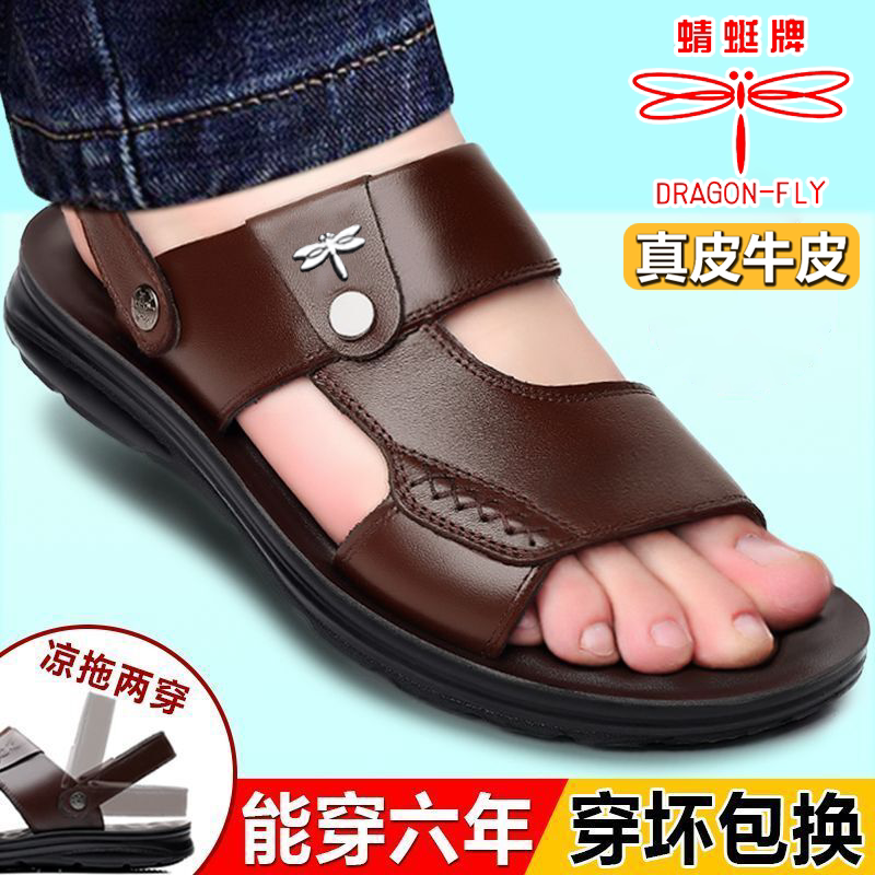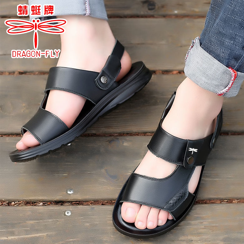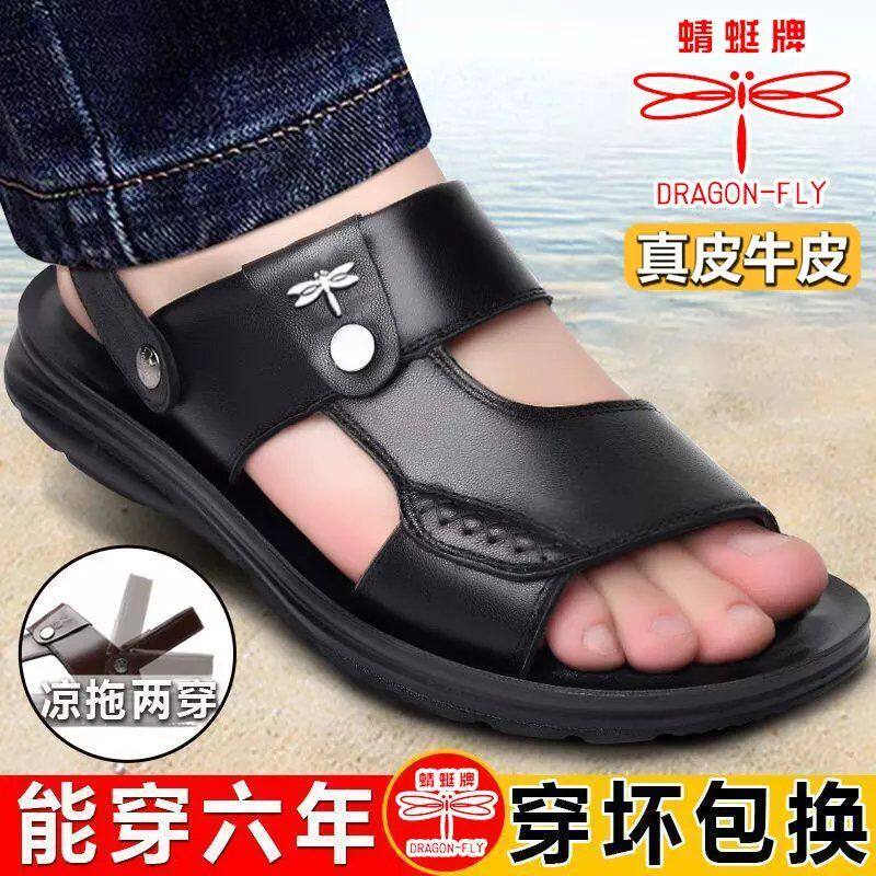男士 沙滩鞋 休闲皮凉鞋 蜻蜓牌凉鞋 潮耐磨皮鞋 真皮拖鞋 凉拖鞋 男夏季