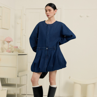 连衣裙套装 ALL 深蓝洗水牛仔花苞长袖 新款 BEINGS2026SS夏季