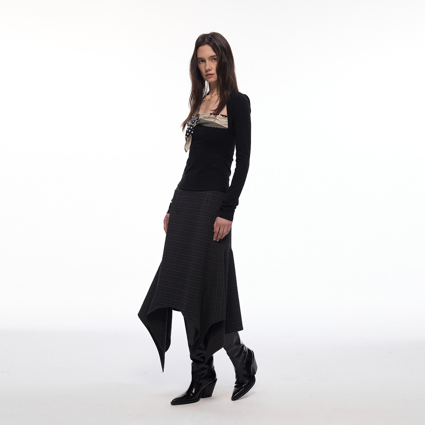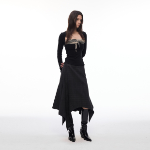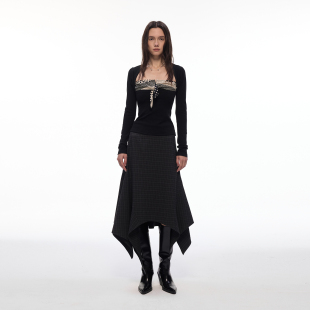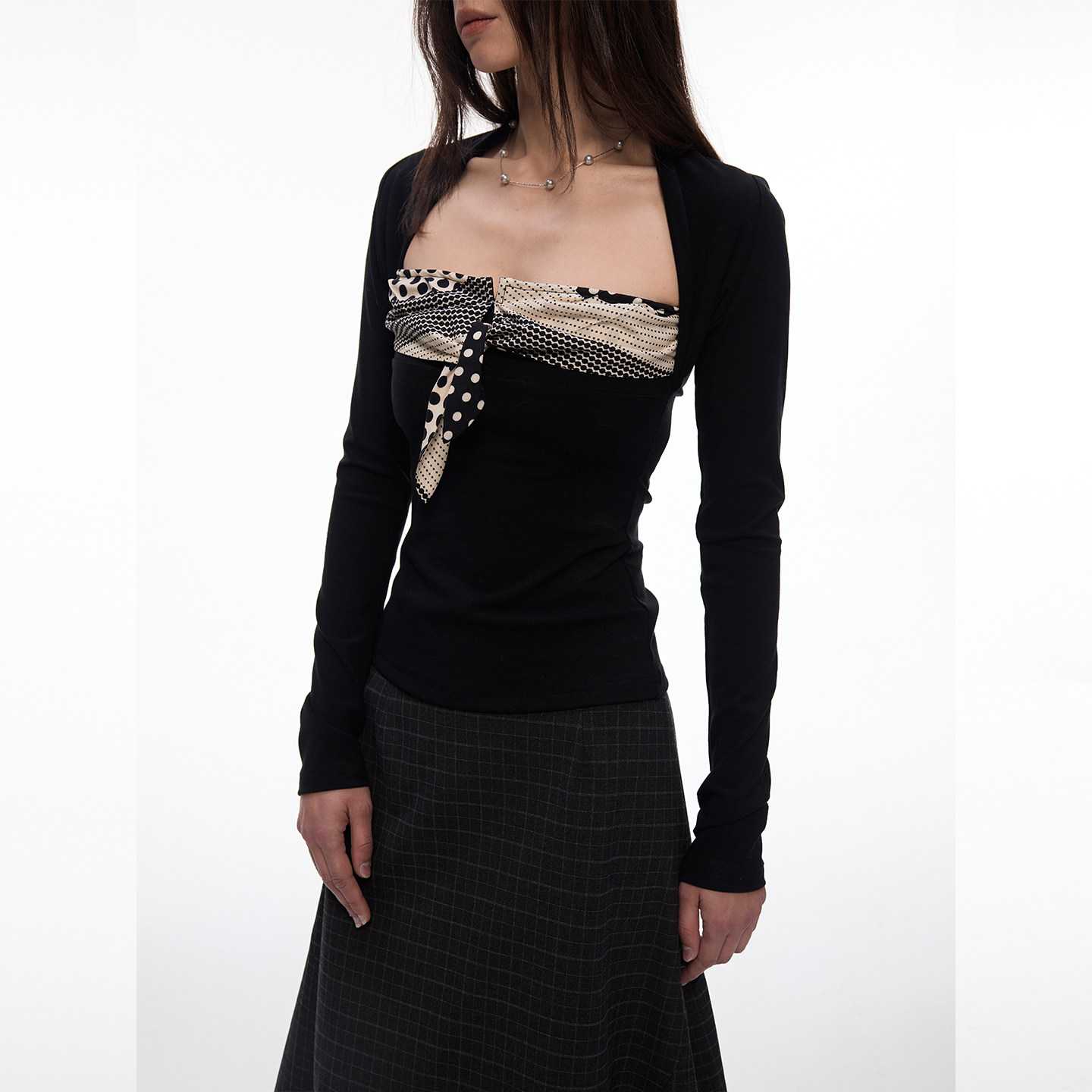t恤波点假两件长袖 显瘦辣妹风长袖 BiLLconch修身 上衣 叠影波点