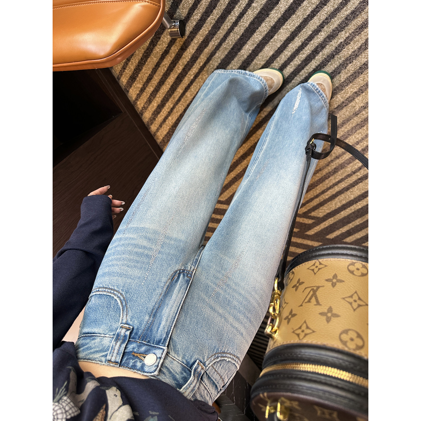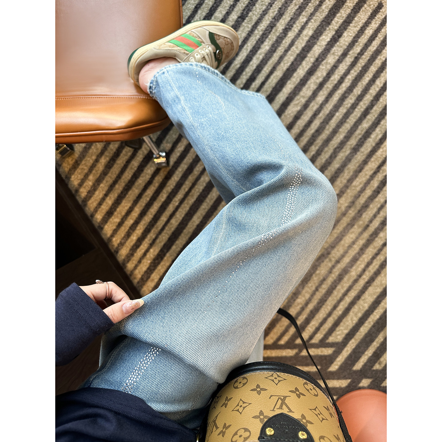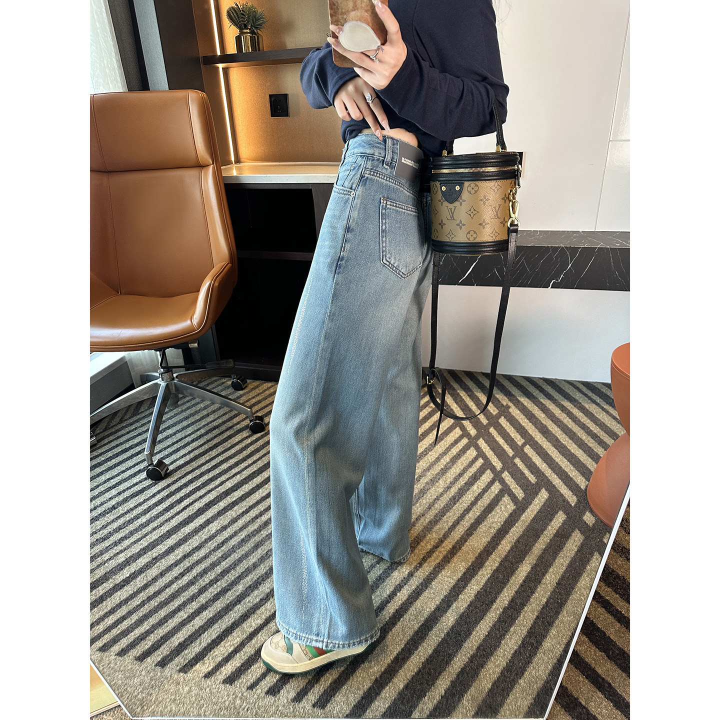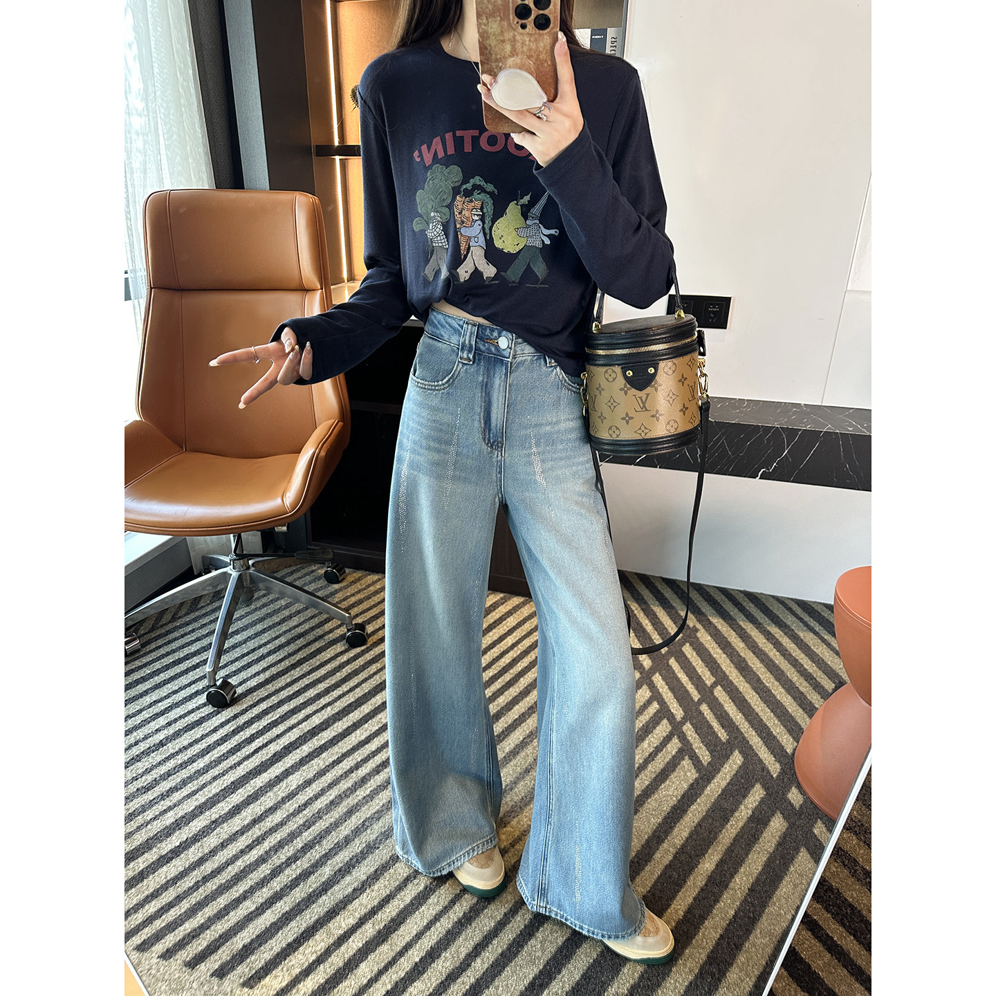 宽松慵懒感拖地长裤 闪闪满天星 春季 女2026新款 烫钻筒喇牛仔裤