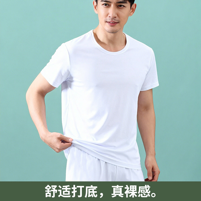 短袖 短裤 大码 男士 圆领无痕睡裤 薄款 宽松家居服套装 莫代尔睡衣夏季
