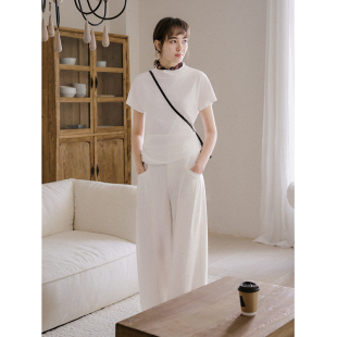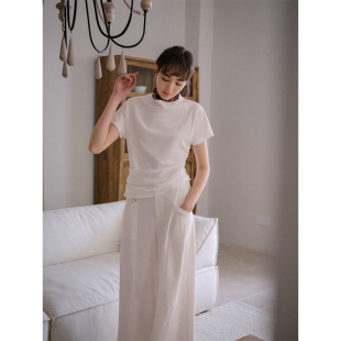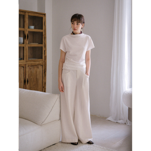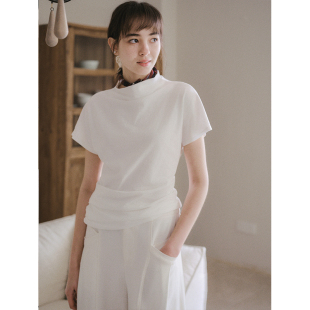 短袖 Even 设计感半高领纯色小飞袖 100%棉 T恤上衣 Vintage