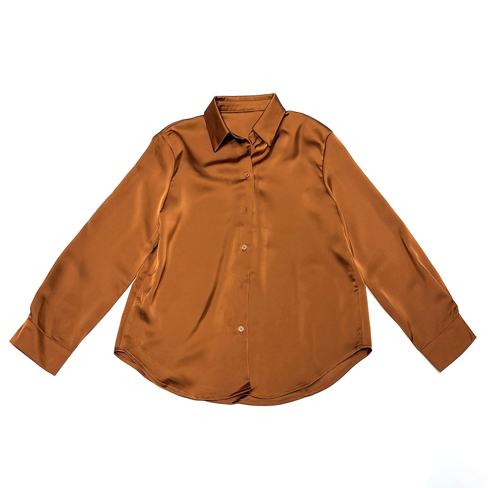 CCA自制仿绸缎亮面醋酸光泽感衬衣气质高级感宽松长袖 女 缎面衬衫