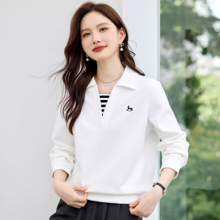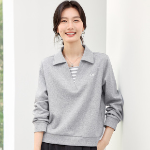 洋气女装 春秋季 无帽假两件显瘦上衣 爆款 正肩翻领女士卫衣2026新款
