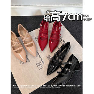 一字扣带女鞋 2026早春新款 小个子尖头浅口单鞋 隐形内增高7CM