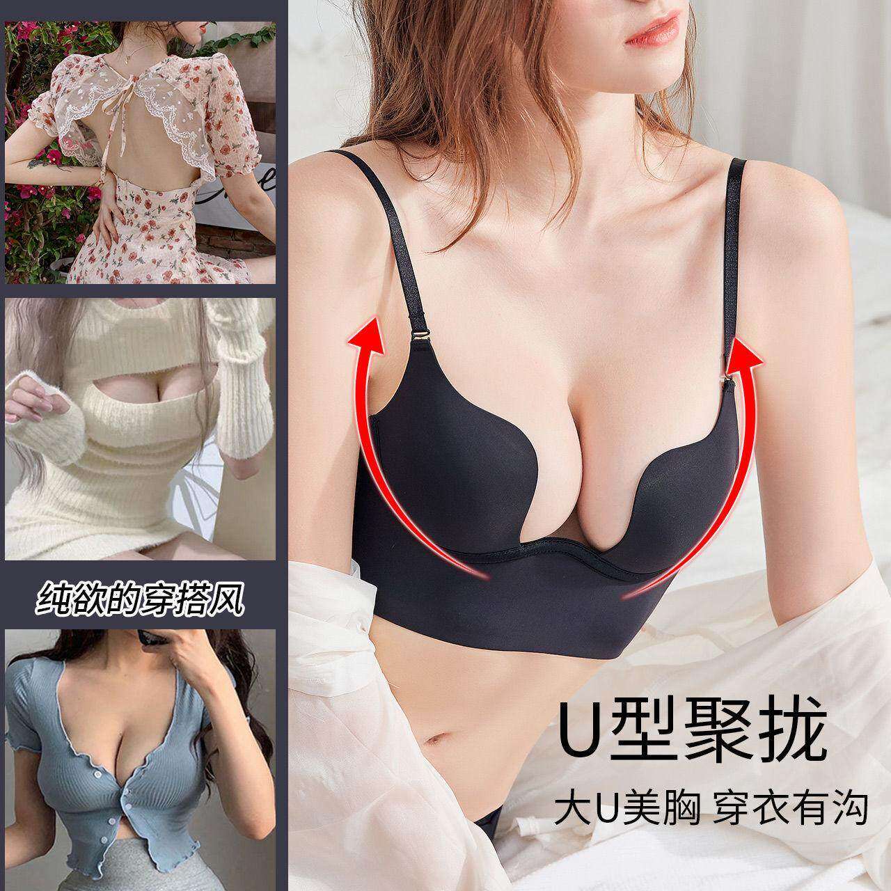 晚礼服内衣後背隐形无痕u型美背小胸聚拢婚纱露背装 文胸 专用薄款