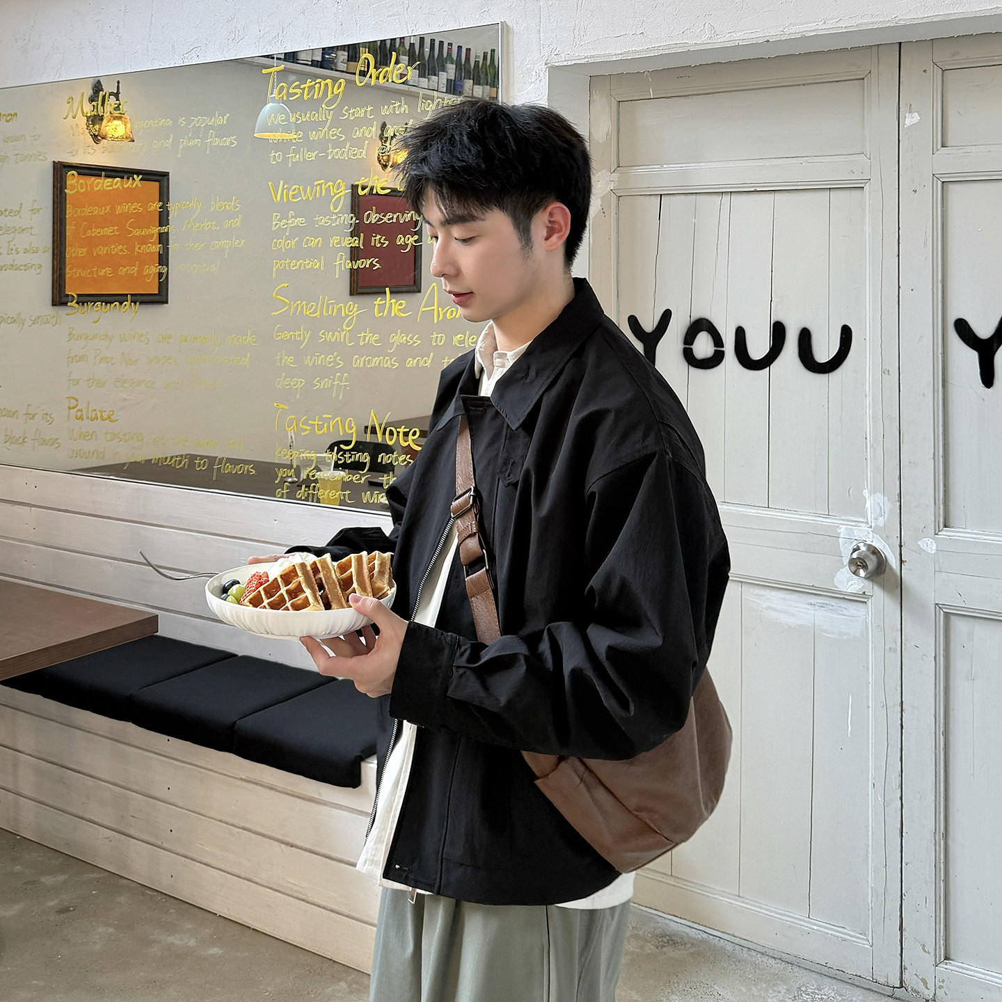翻领拉链夹克男质感飞行员上衣外套男2026新款 春季 高级BLACK