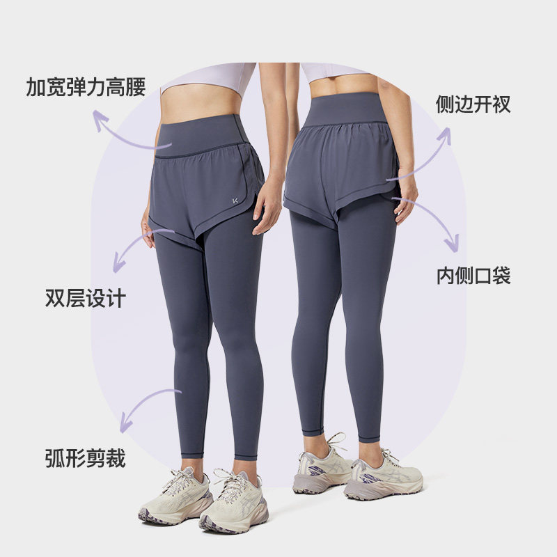 高腰紧身裤 跑步运动裤 健身服梨形 女士速干健身裤 Keep假两件瑜伽裤