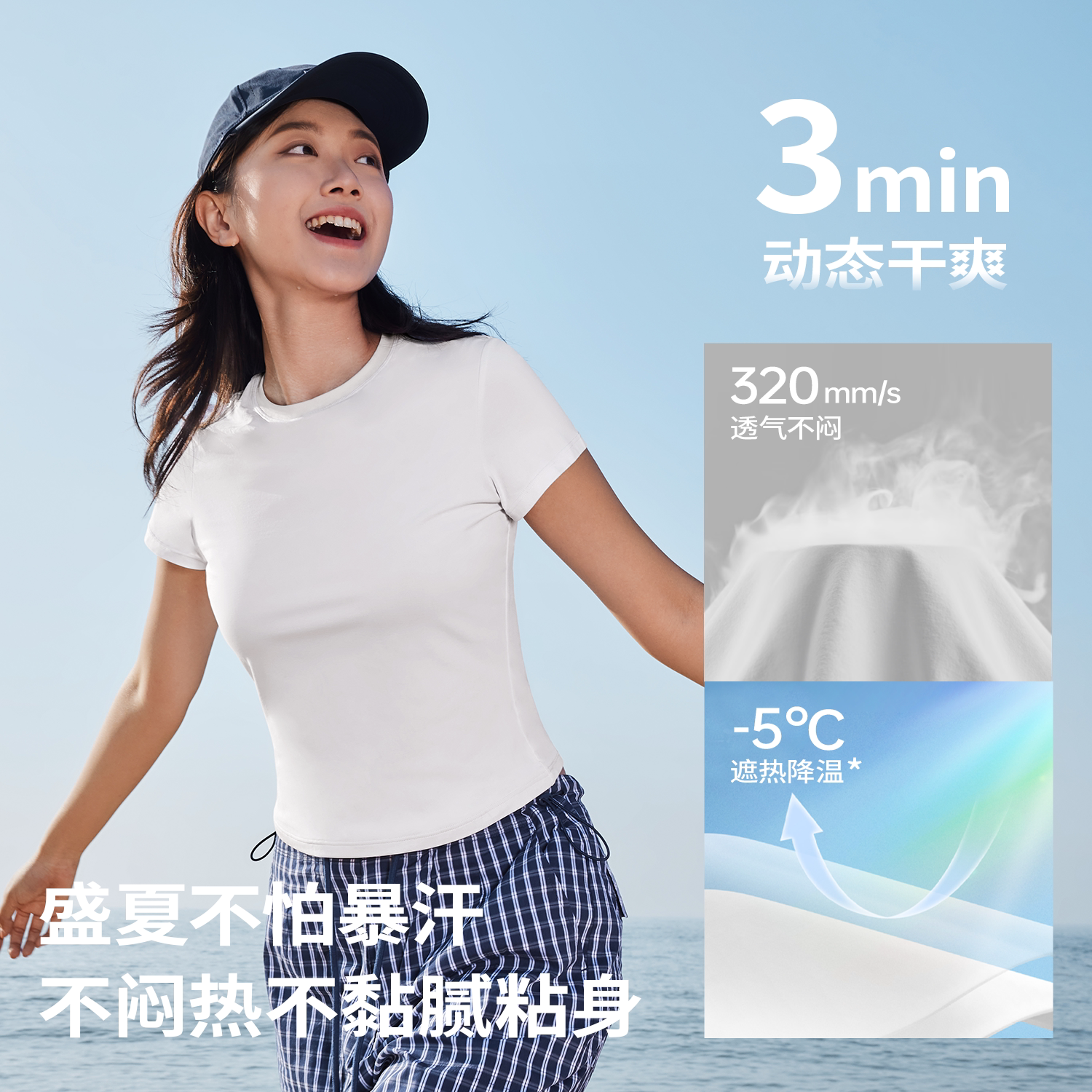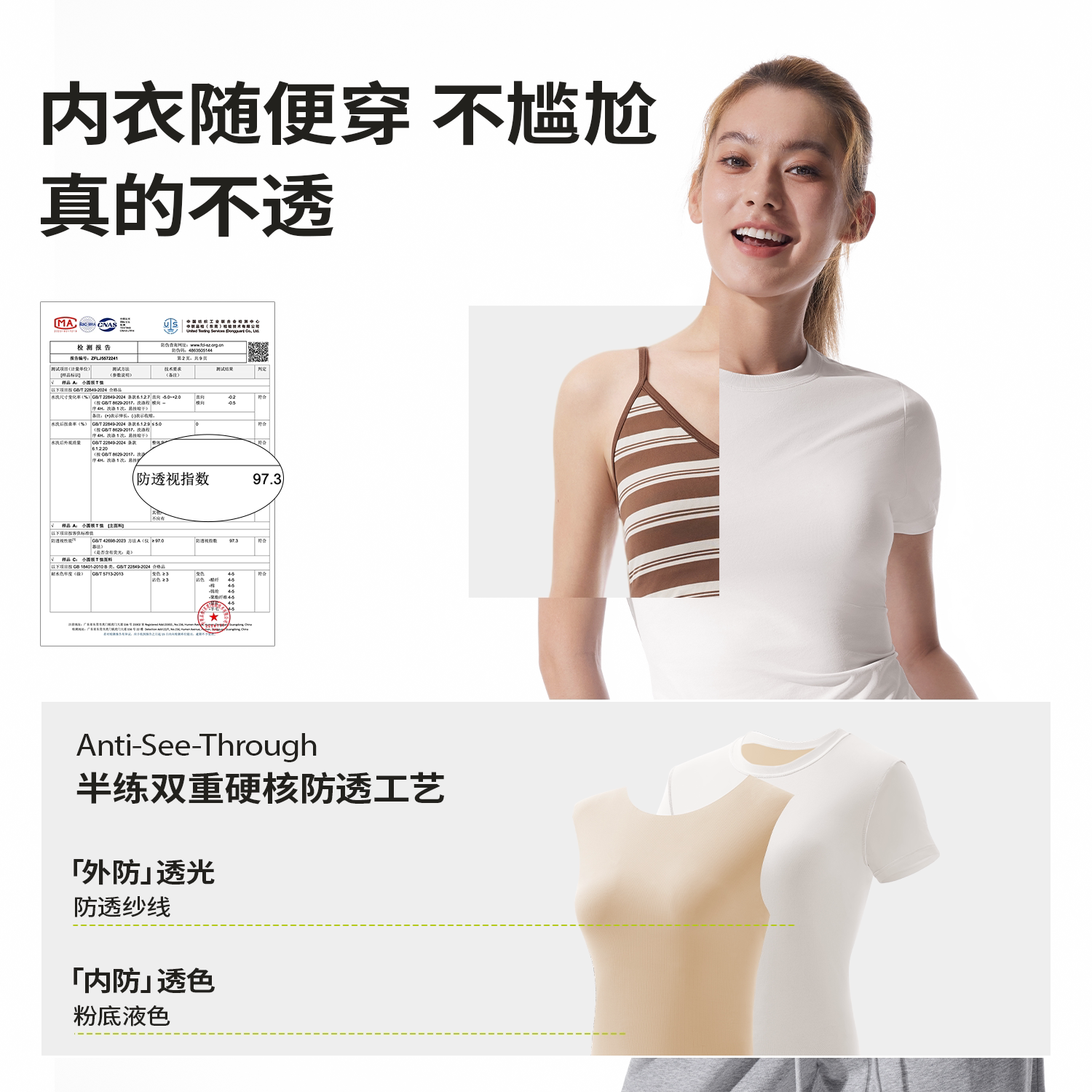 显瘦正肩上衣百搭打底凉感内搭 修身 半练不透色白色T恤女新款 短袖