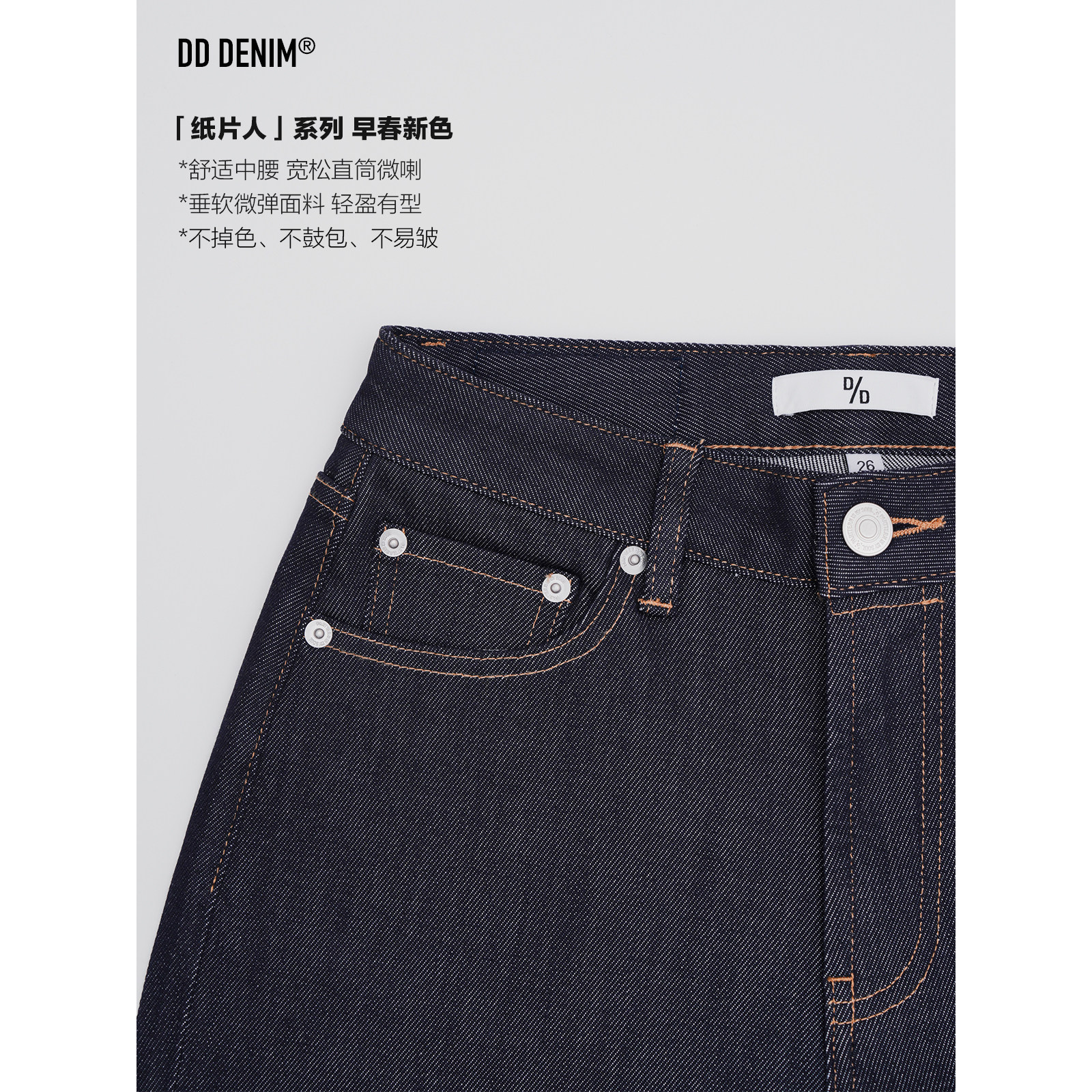 女显瘦松弛感阔腿裤 DD「纸片人」26早春新色 原色直筒微喇牛仔裤